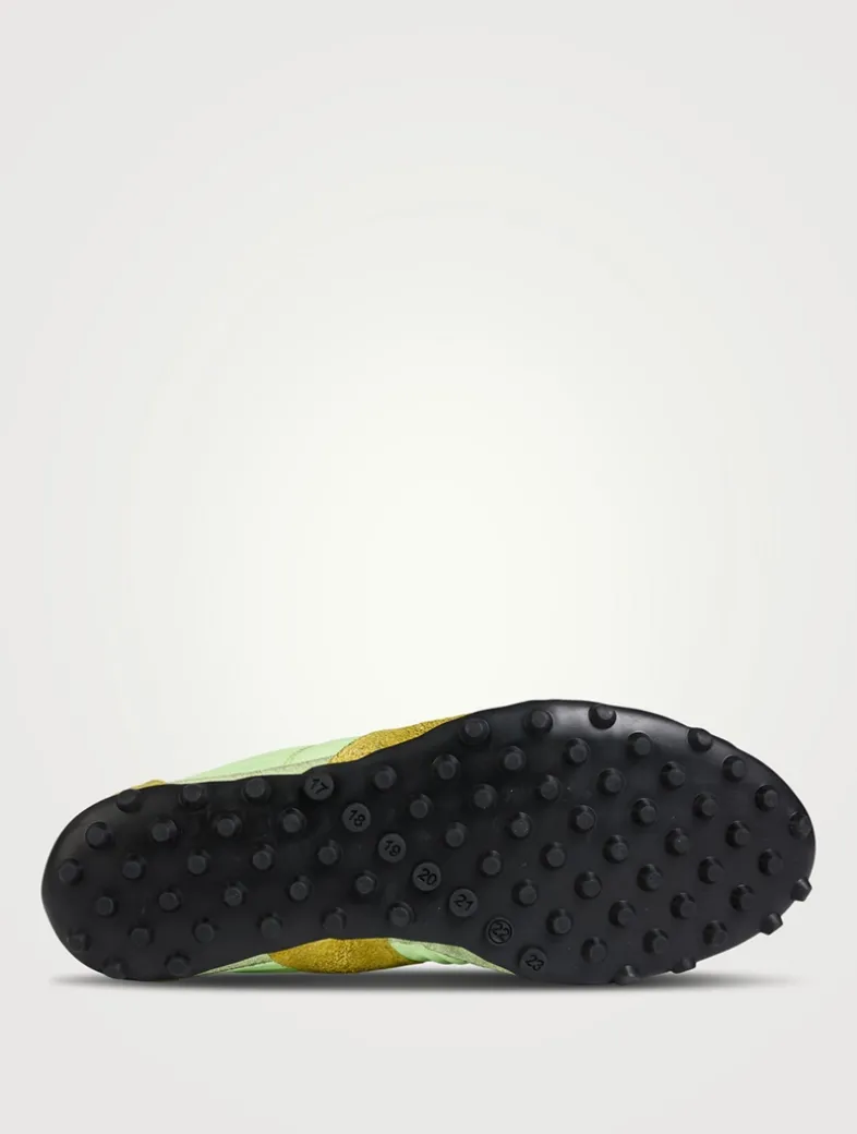 A distressed finish lends a live-in touch to this pair of low-top sneakers, which features a lace-up vamp and treaded sole.