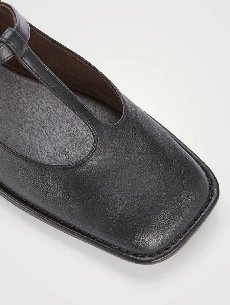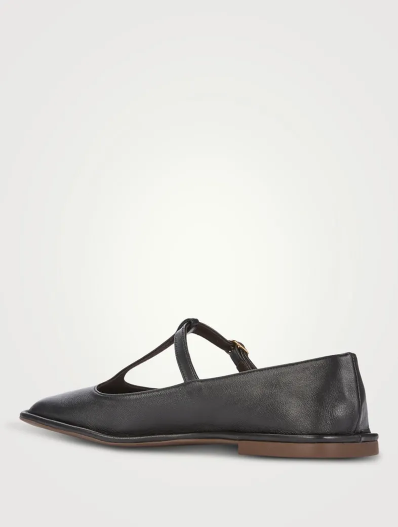 Crafted in soft lightweight leather, these flats are designed with a squared toe, a leather sole, and an adjustable buckle closure.