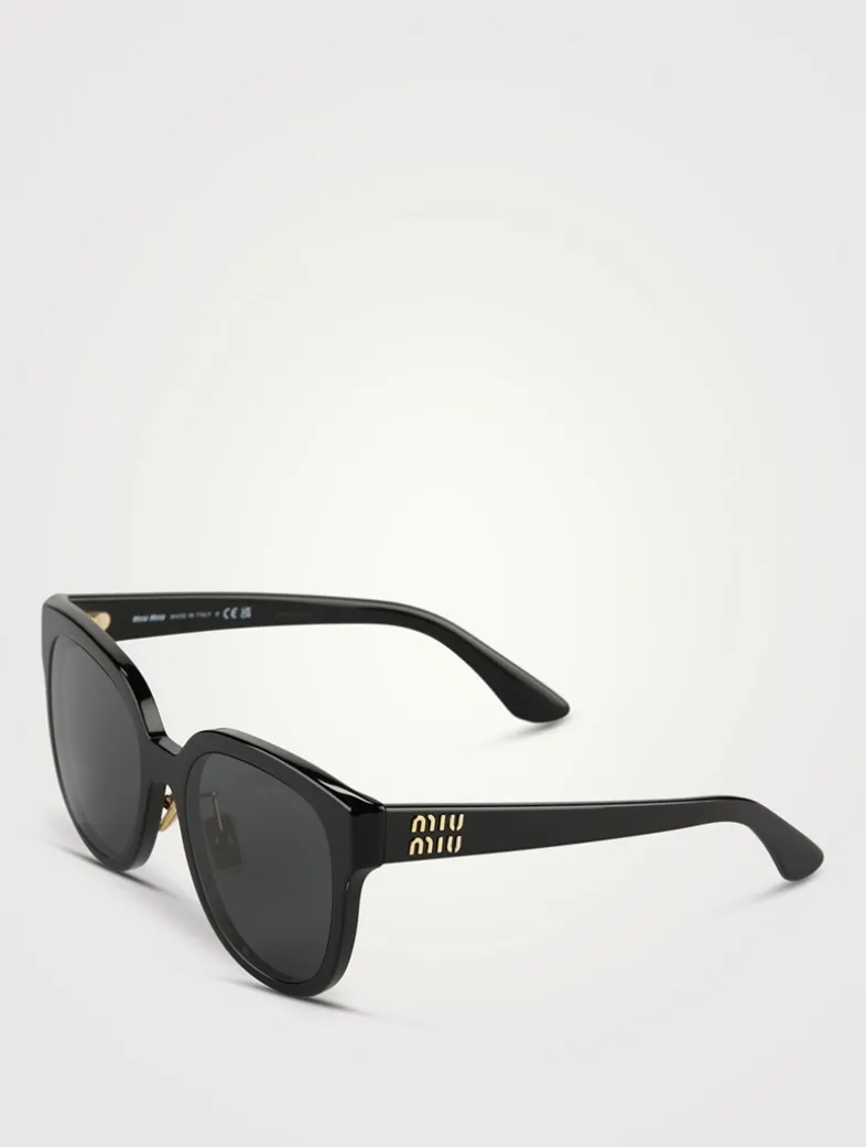 Characterized by their rounded square silhouette with a feminine touch, these oversized frames are designed with straight temples embellished with the raised vertical Miu Miu logo.