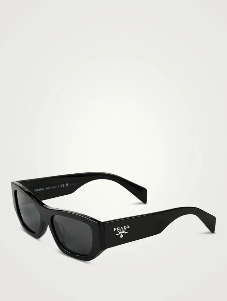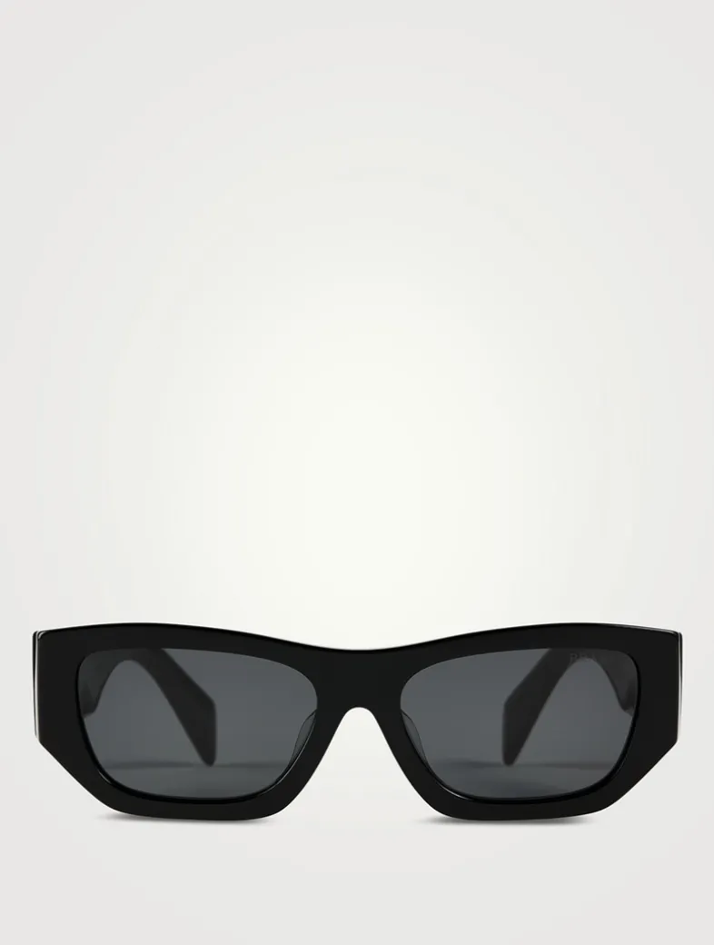 Acetate sunglasses defined by the elegant narrow rectangular silhouette. The sophisticated front with bold rims is combined with chunky temples embellished with the iconic Prada logo.