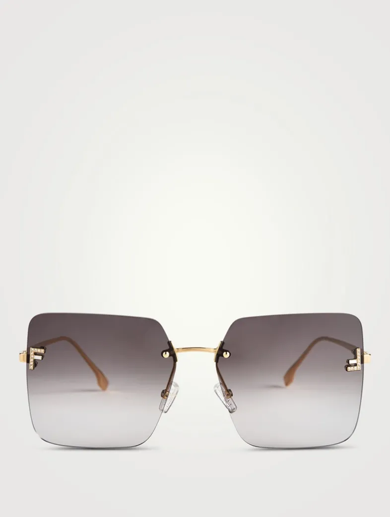 Featuring square, rimless lenses, these oversized sunglasses are decorated with a crystal micro F’s at the temples.