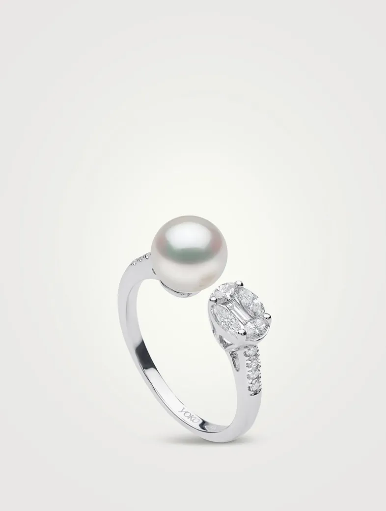 Starlight 18K White Gold Akoya Pearl Ring With Diamonds