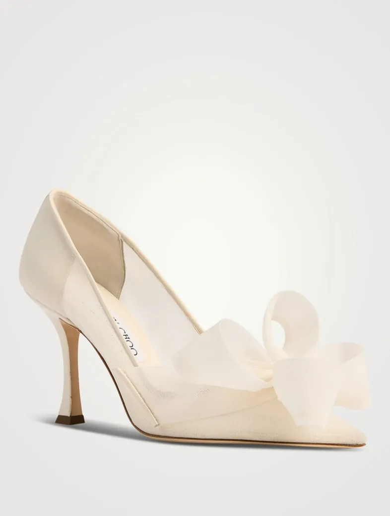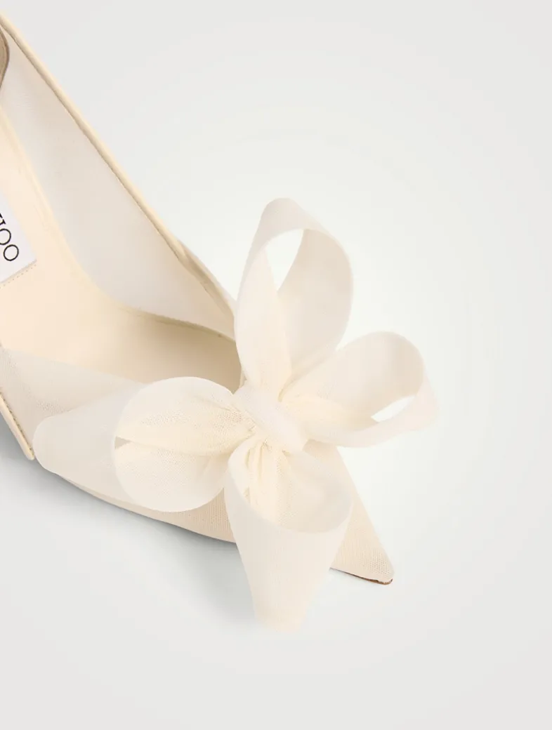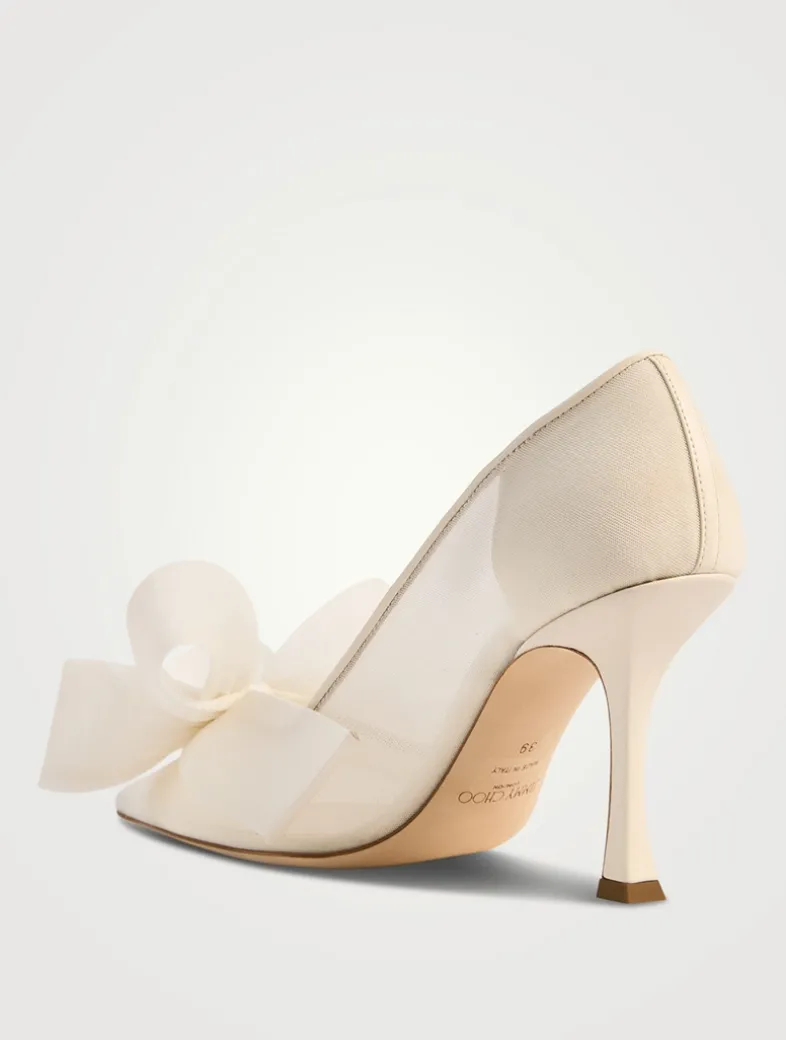 Made from delicate mesh and buttery-soft leather, these pointed pumps are adorned with a playful bow detail at the toe. Set on a slim 90mm heel.