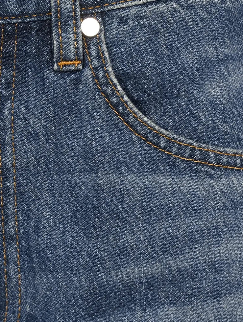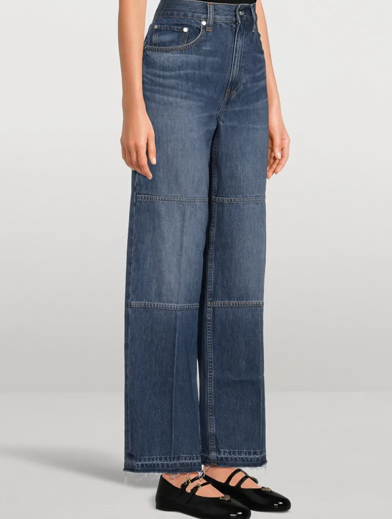 These carpenter jeans are designed with a relaxed leg in mid-wash indigo denim. The pair feature classic utilitarian details and a released hem with raw-edge effect.