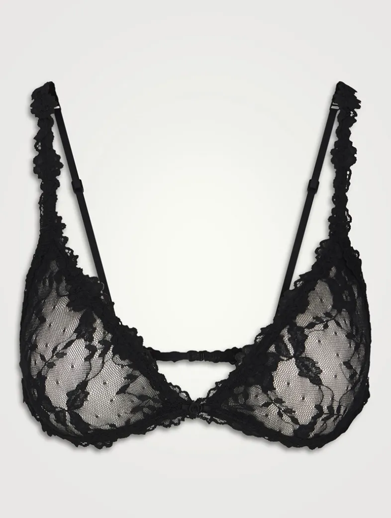 Spice up your night. Made with SKIMS’ signature sheer lace fabric, this stretchy triangle bralette features feminine lace trim and a dainty rosette detail. Features adjustable straps and a hook closure.