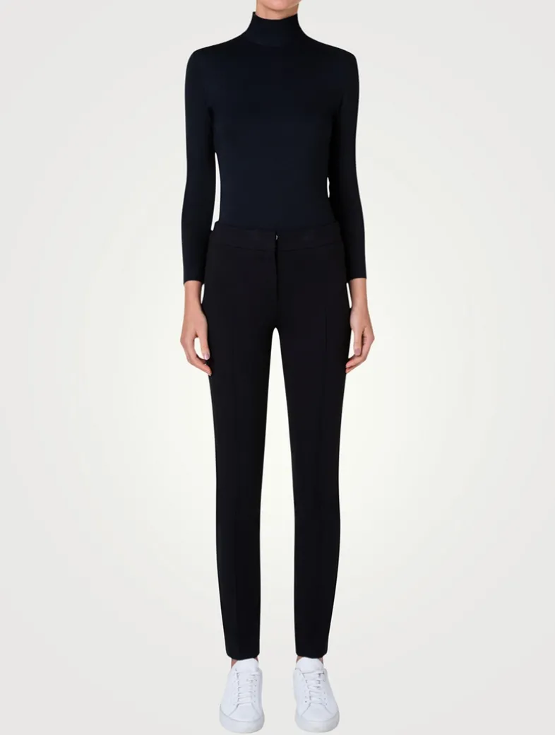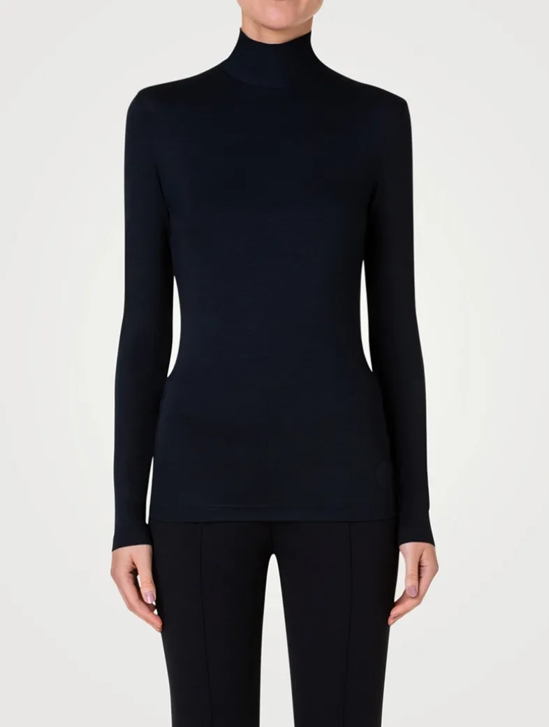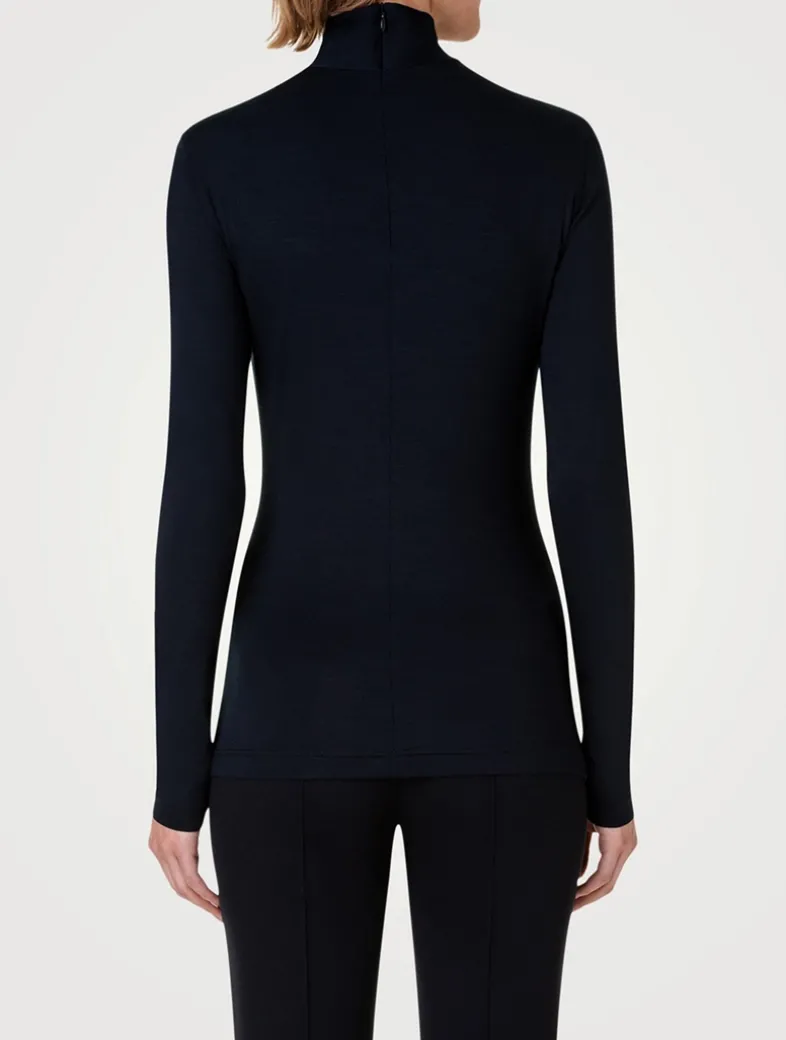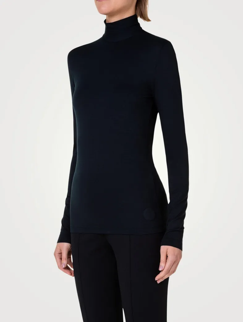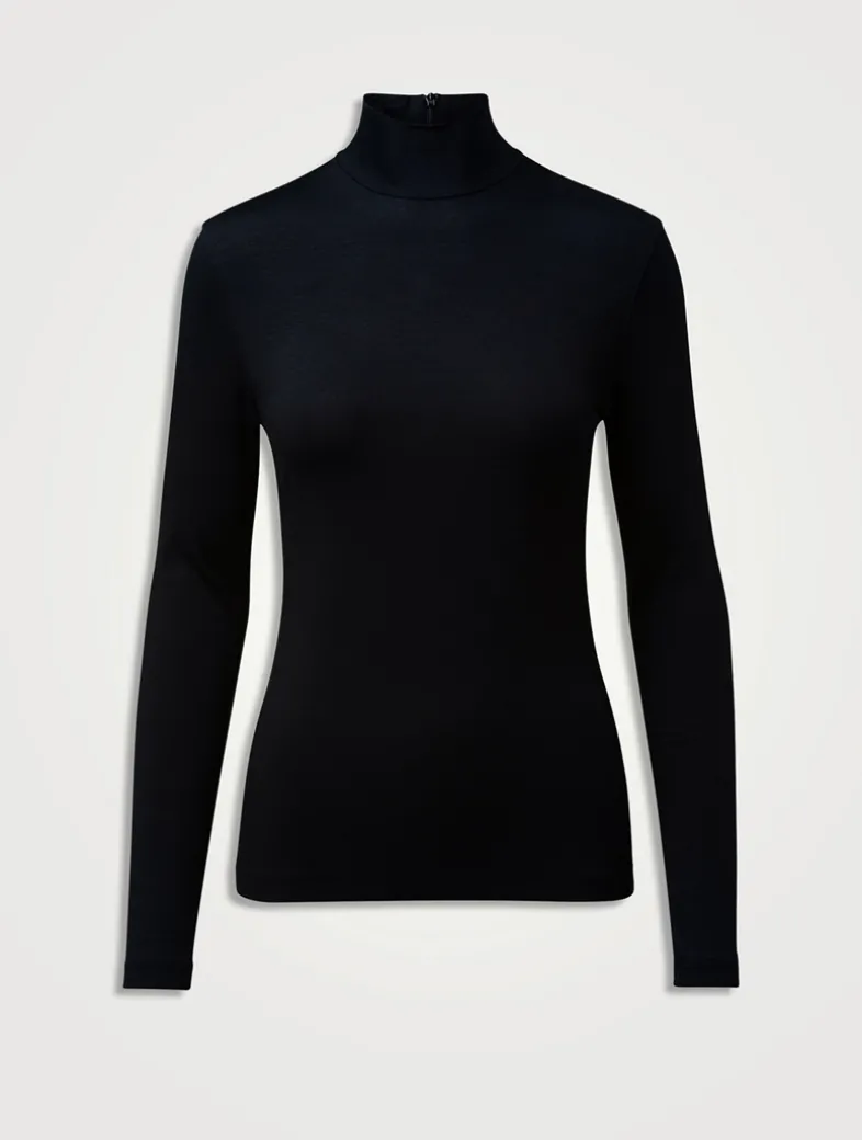 Curve-hugging shirt in luxe modal stretch with turtleneck, long sleeves and a back zip closure.