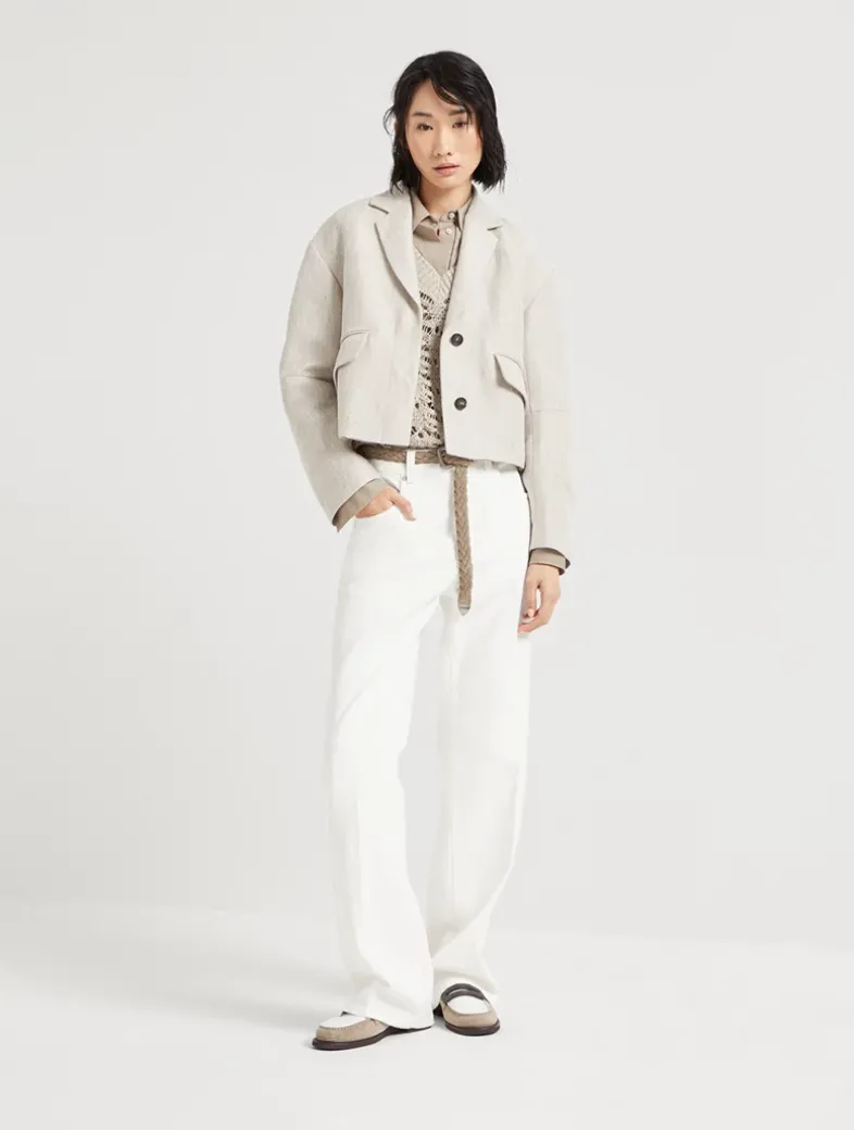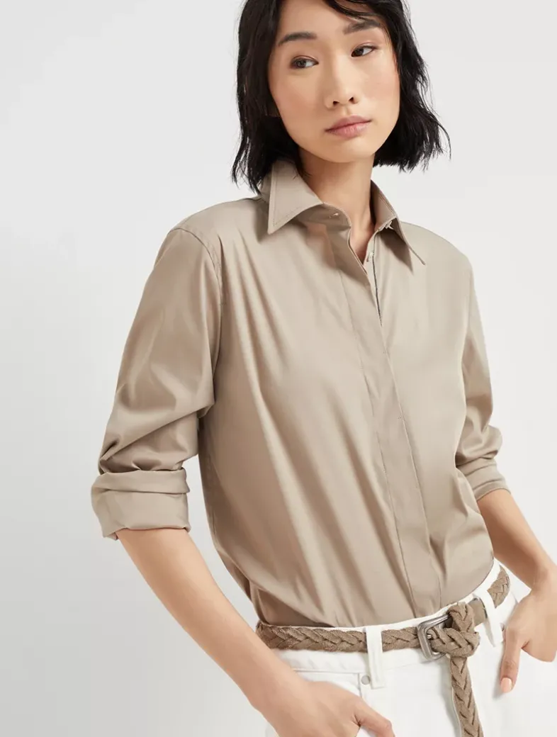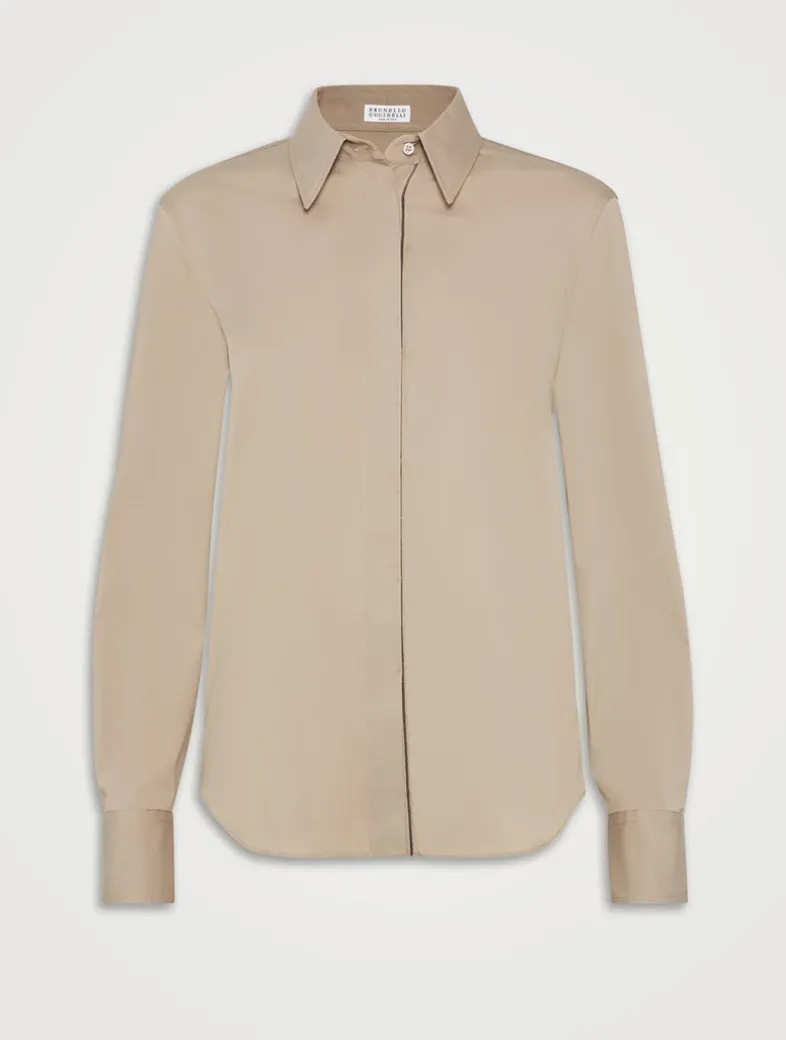 Stretch cotton poplin shirt with shiny trim