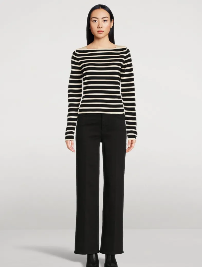 Mariner stripes and a chic bateau neckline give this sweater a polished look that elevates day-off outfitting. Featuring a slim-cut fit, this sweater re-envisions classic Breton stripes for an edgier take on a timeless style.