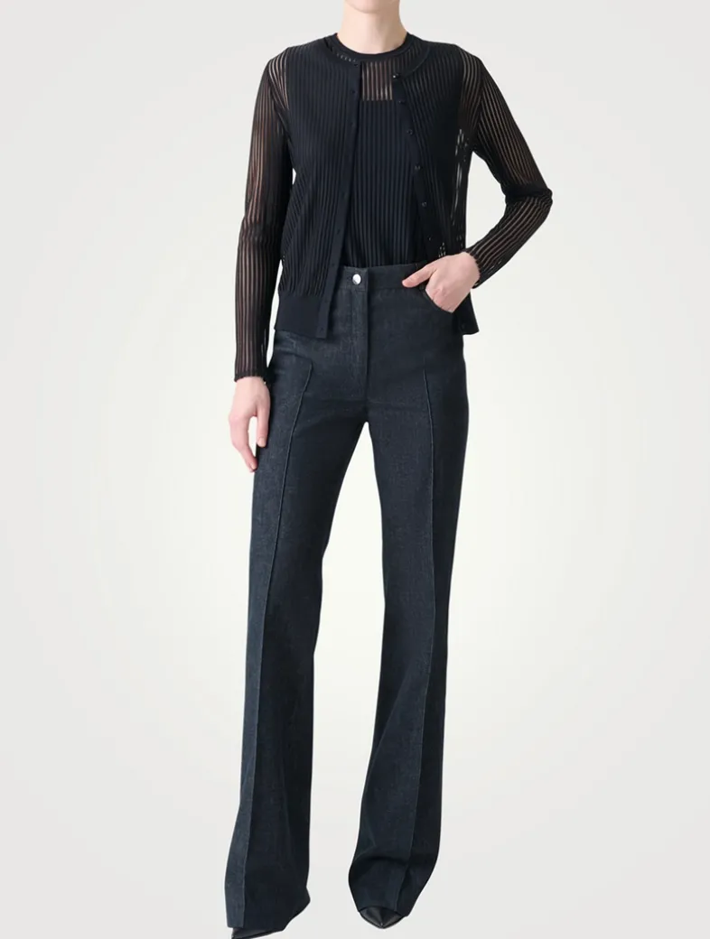 Cut to a hip length, this long-sleeve cardigan features a rounded neckline, buttoned closure, and striped motif all over. Finished with a rib-knit hem.