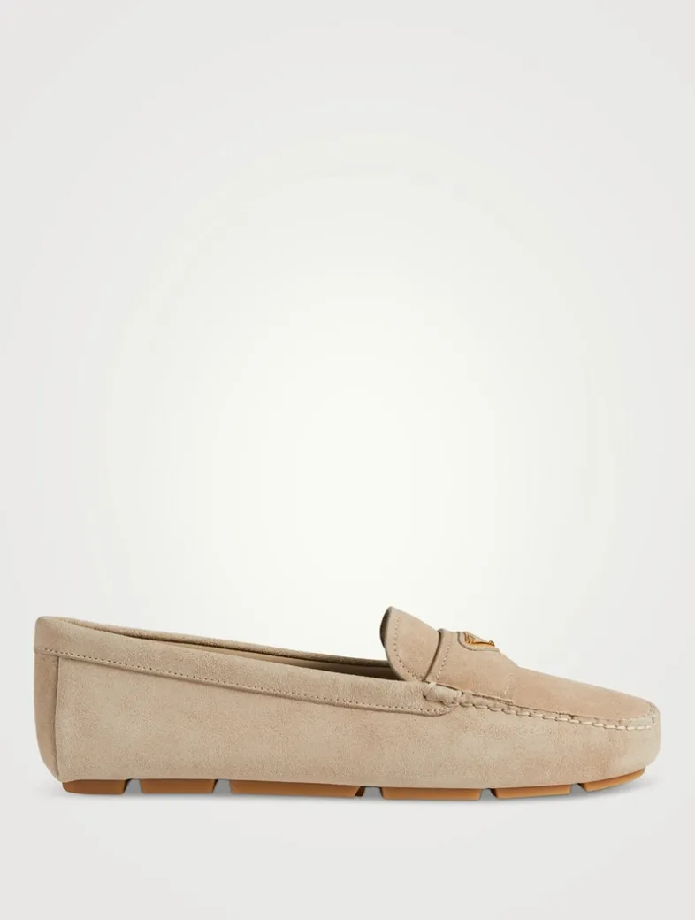 These driving loafers with timeless charm have a sleek silhouette, an expression of sophistication and artisan know-how. The elegant and comfortable style made of suede is characterized by the lightweight and flexible treaded rubber sole. The enamelled metal triangle logo completes the shoe with its iconic signature.