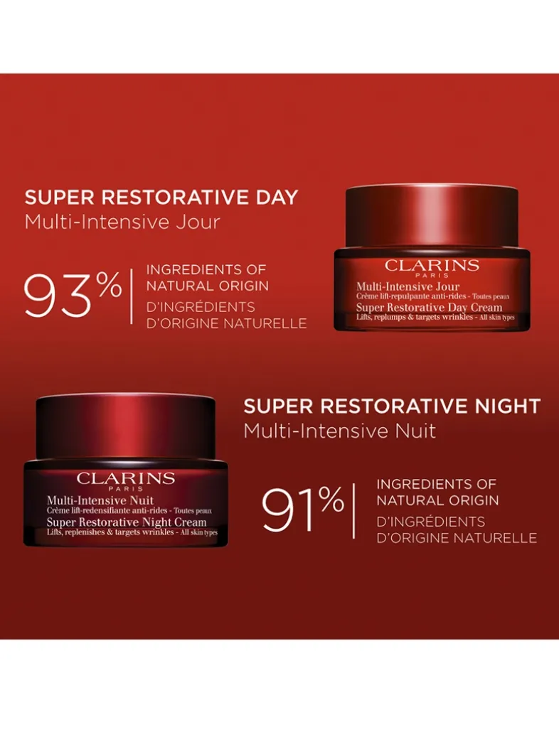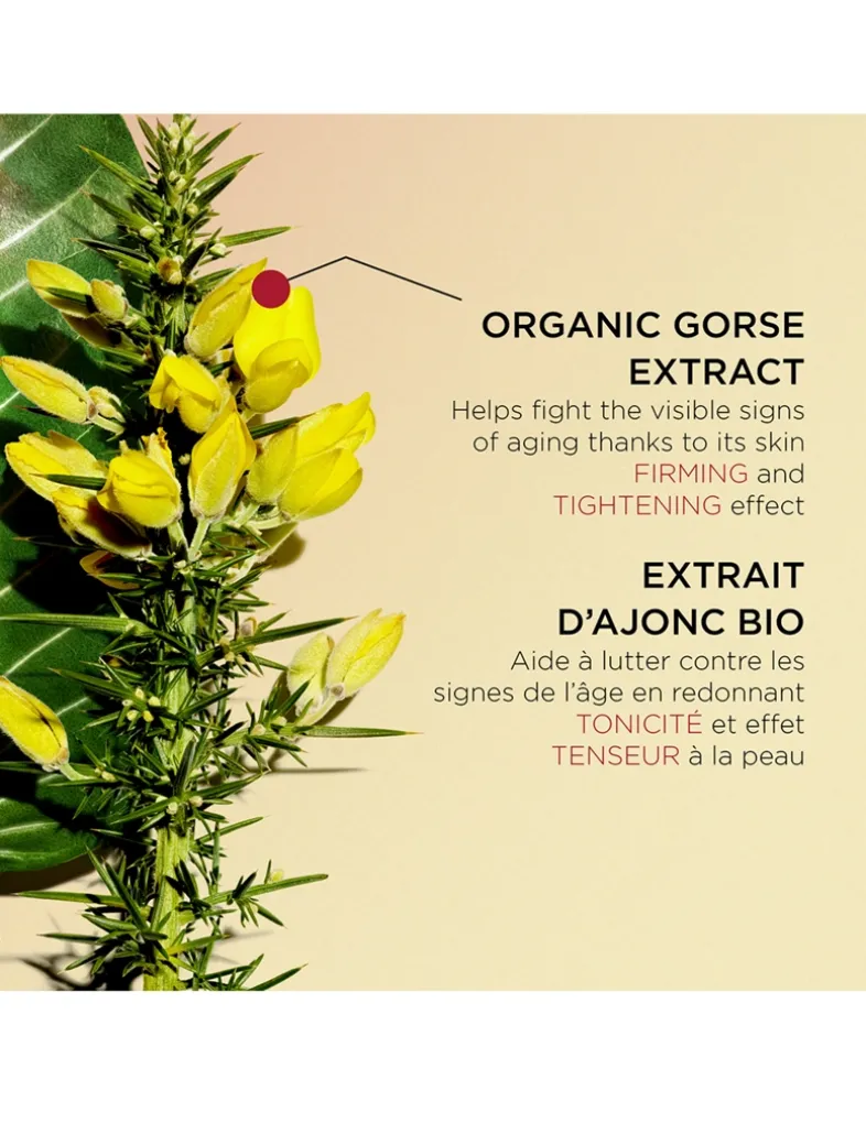 A deeply replenishing, anti-aging night moisturizer for all skin types that minimizes the appearance of lines, wrinkles, dullness, and slackening caused by age-related hormonal changes, while evening skin tone — for a visibly smoother, firmer, radiant, and more youthful-looking complexion.This next generation green beauty innovation is powered by 91% ingredients of natural origin. Clarins’ proprietary new Lift-Replenish Duo features wrinkle-fighting Organic Harungana extract—as effective as retinol and gentle on the skin— to replenish and visibly minimize loss of density and new Organic Gorse extract, to visibly tighten and improve slackening caused by hormonal deficiencies linked to menopause. Its fresh, delicately floral fragrance with soft heart notes creates a pleasant sensation.