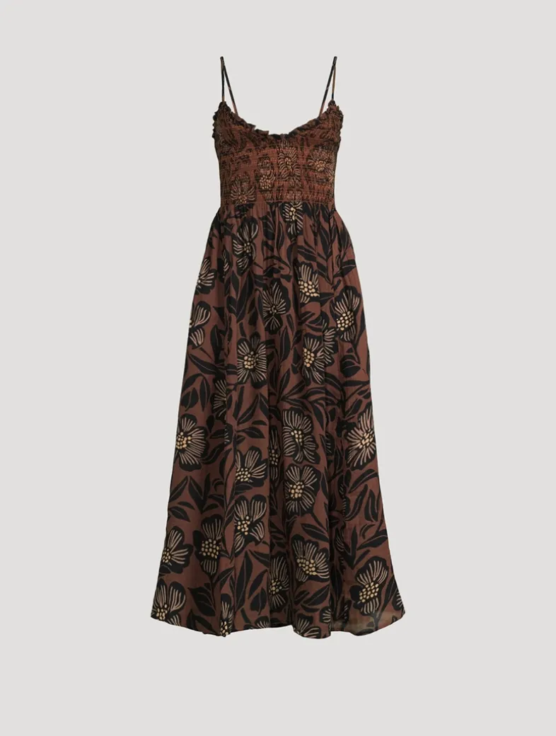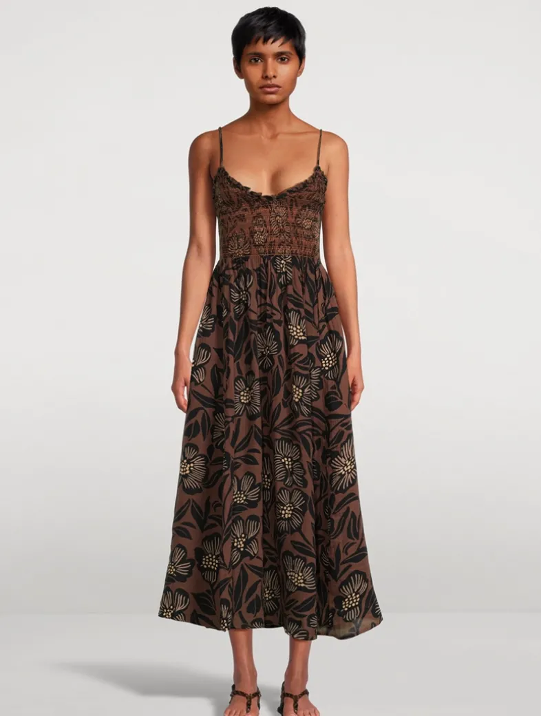 Made to be dressed up or down, this midi dress is featured in a soft cotton fabrication with a printed design. It has a comfortable smocked bodice framed by slim straps and a classic scoop neckline.