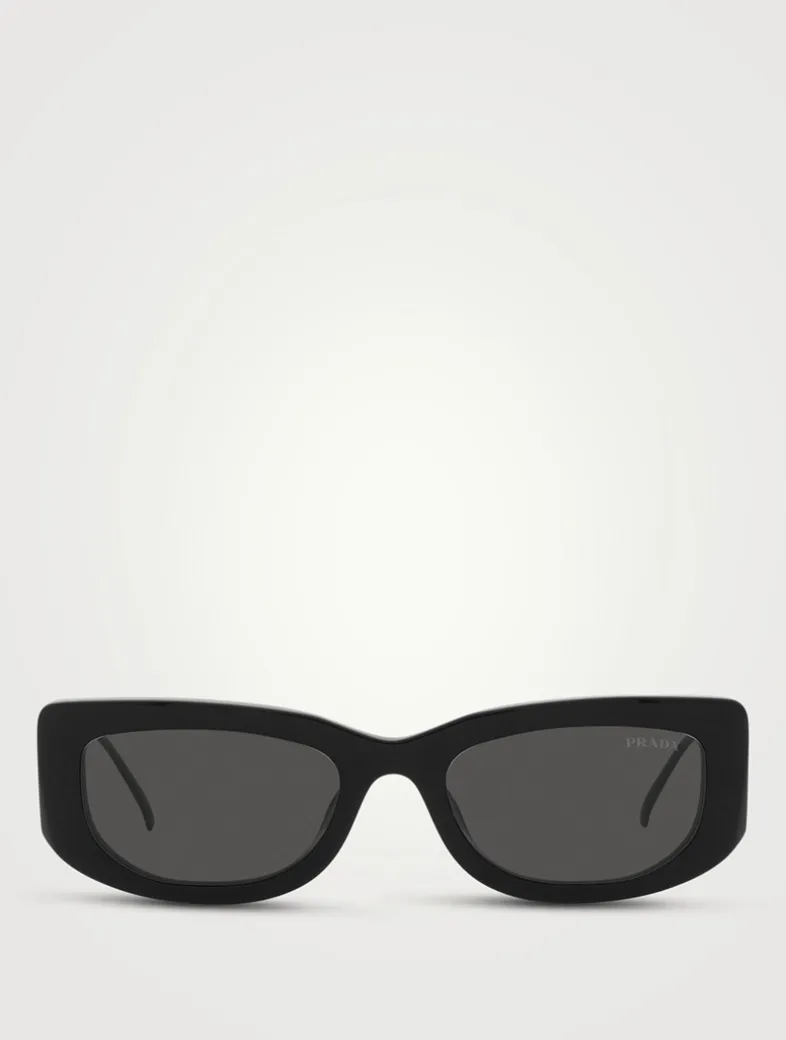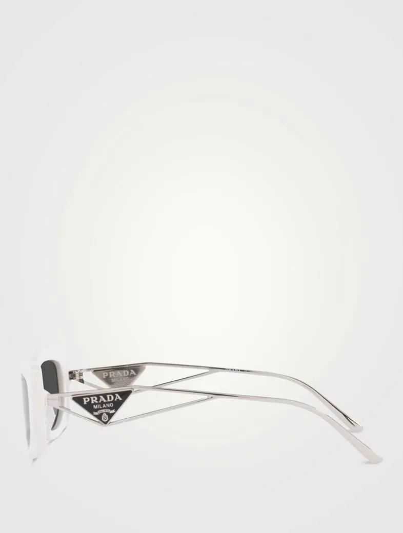 These rectangular sunglasses feature open metal temples decorated with PRADA triangle logo inserts inspired by the maison’s jewellery.