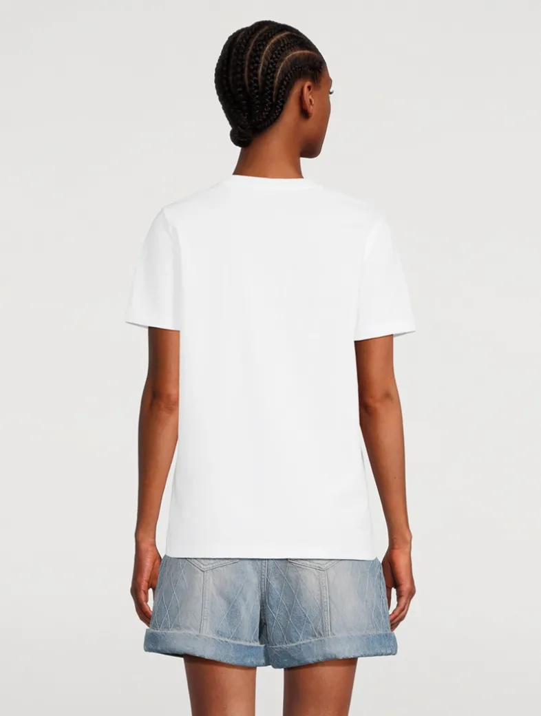 This classic jersey tee is adorned with the Balmain Paris Chain print on the front, which features Balmain Paris and PB logos worked into the pattern. 100% of the cotton fibres used to make this garment are certified and organically farmed.