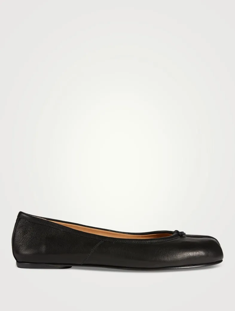 The Tabi ballerina flats in soft nappa leather feature the iconic split toe, inspired by the traditional 15th century Japanese sock bearing the same name – launched for the Maison’s debut collection in 1989. It captures the avant-garde and insubordinate spirit of the Maison and exists as a heritage classic, continually explored through each collection.