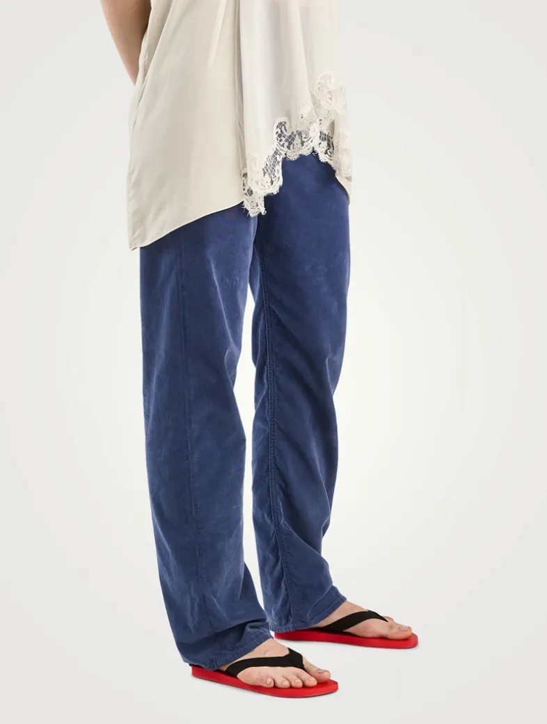 Cut to a mid-rise waist, these pants are crafted in Japanese pinwale corduroy. The perfectly slouchy pair are designed with a relaxed fit, tonal topstitching, and classic five-pocket construction.