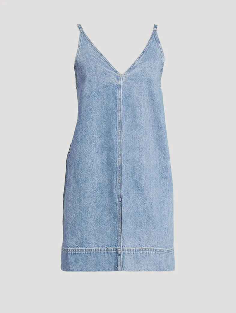 Crafted in rigid denim, this mini dress offers a flattering V-neck and the everyday convenience of pockets. It’s the simple pleasure of a one-and-done outfit that lets you focus on enjoying the warmth with that timeless denim feel.