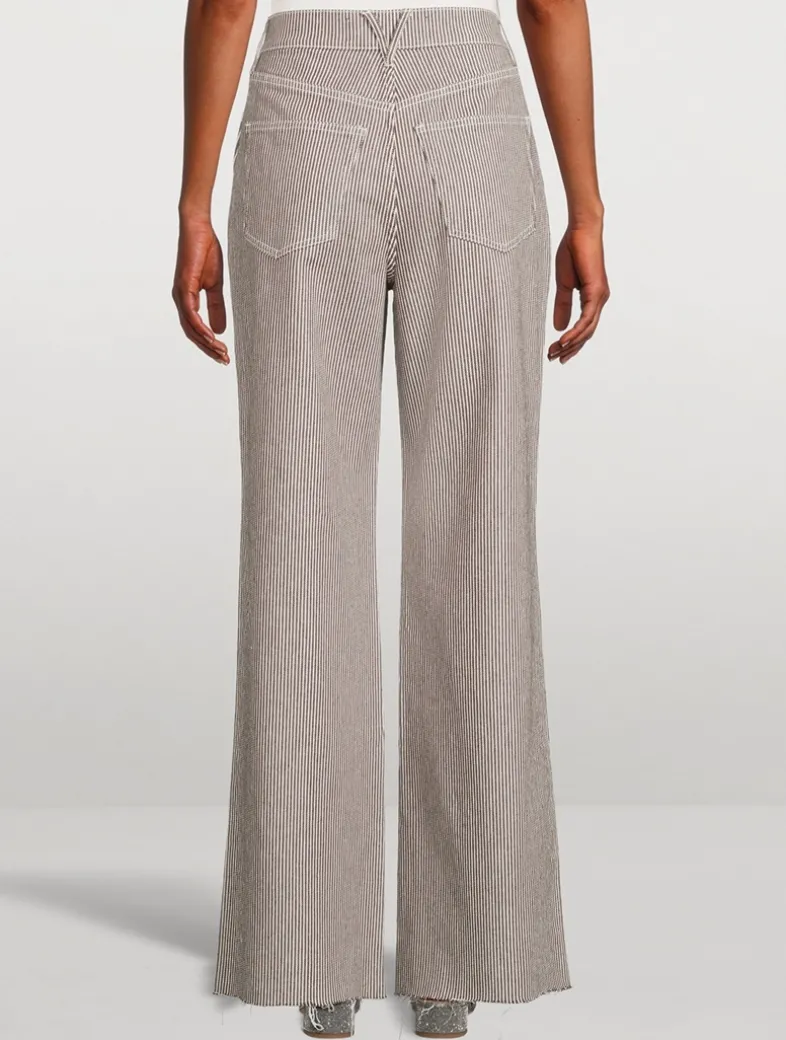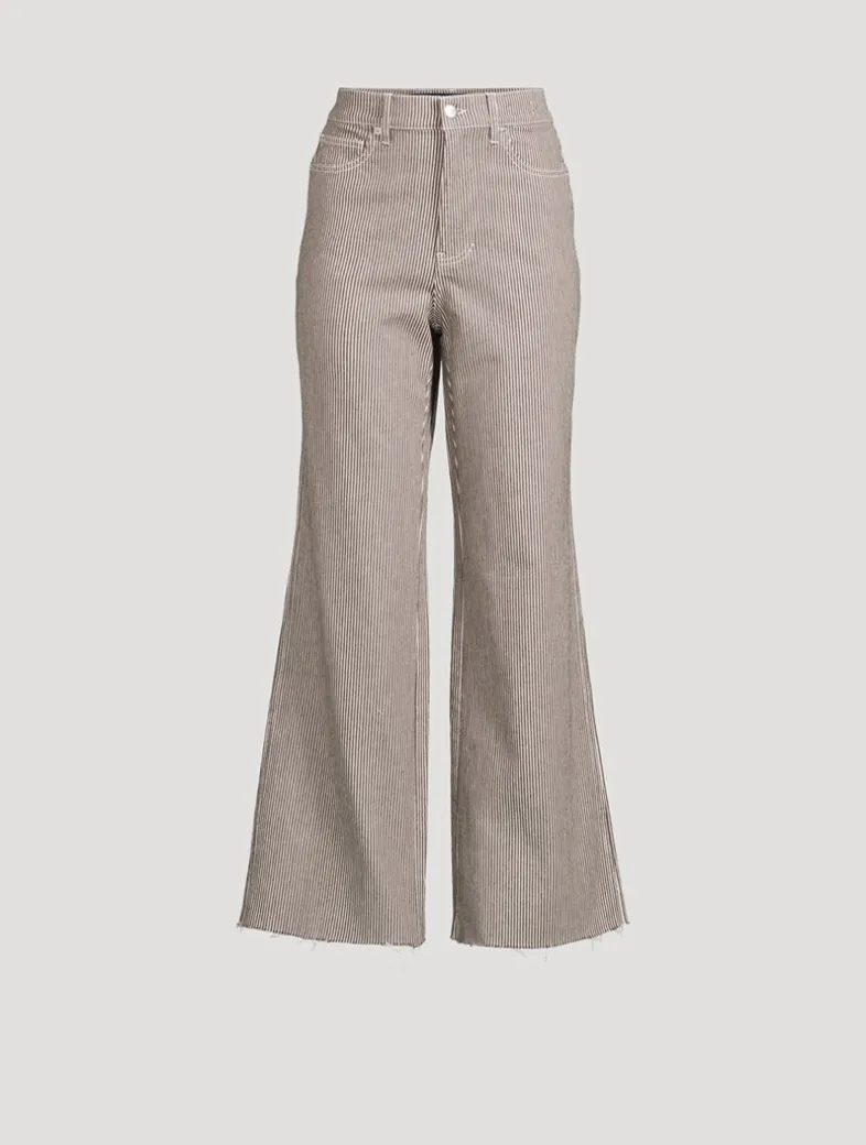 Made from premium stretch denim with vertical stripes, the Taylor features a high-rise waist and a wide-leg silhouette that falls to a raw-edged hem.