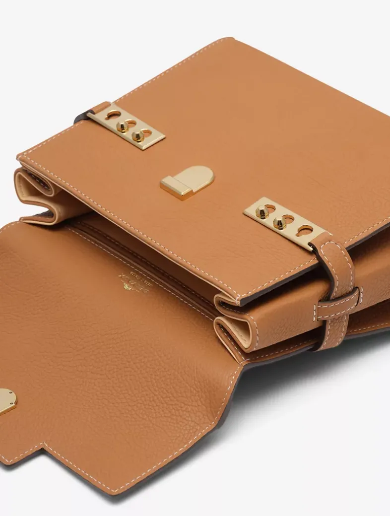 Compact, sculptural bag featuring a removable and adjustable shoulder strap. Crafted in Crispy Calf leather in Vegetal and Ivory. Finished with gold metal hardware.