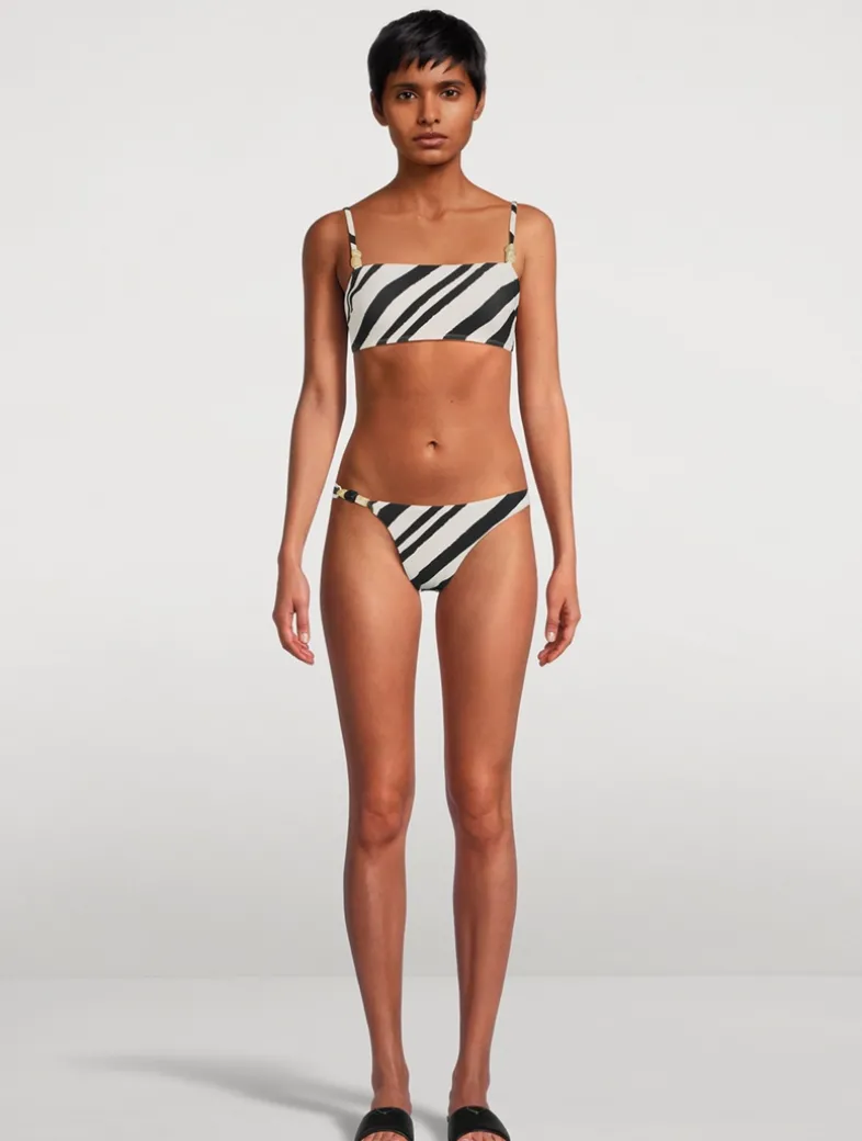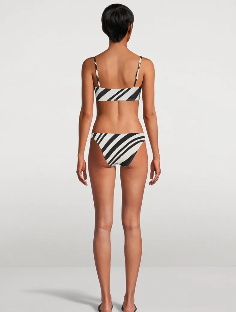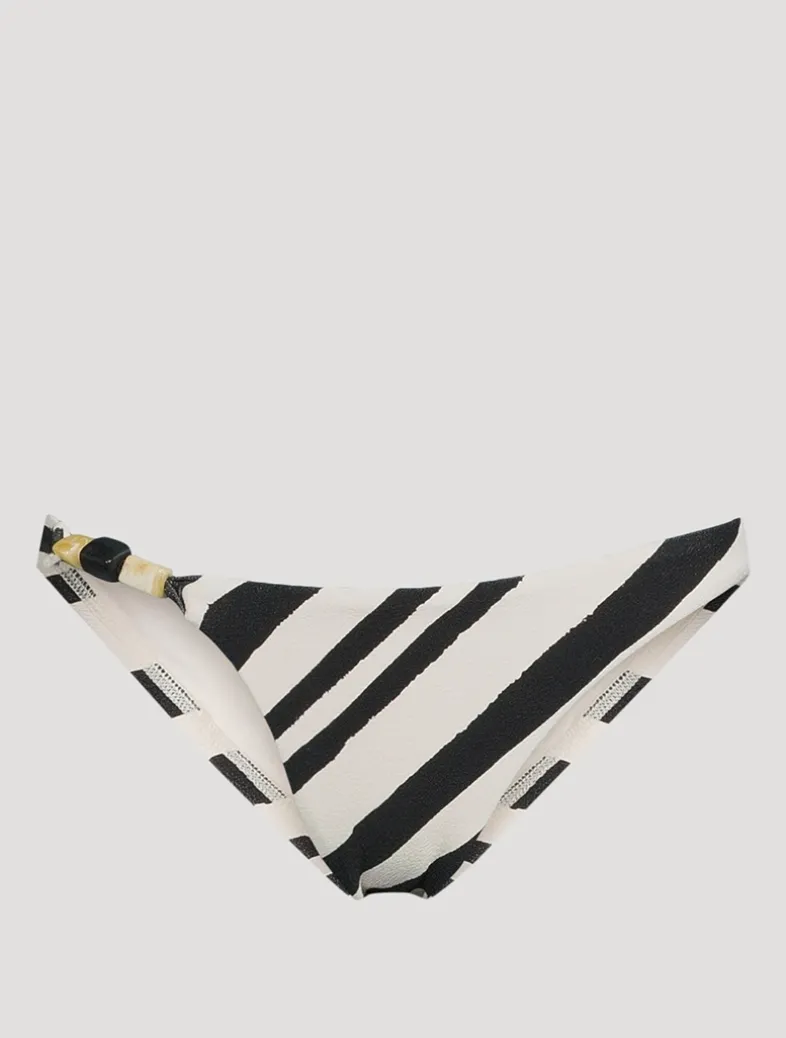 Terra is a leg-lengthening, high cut leg swim bottom with cheeky coverage featuring a recycled resin bead detail. Crafted from recycled nylon yarns and digitally printed for water conservation, Sandbar Stripe is a diagonal stripe print fabric with a matte crepe texture.