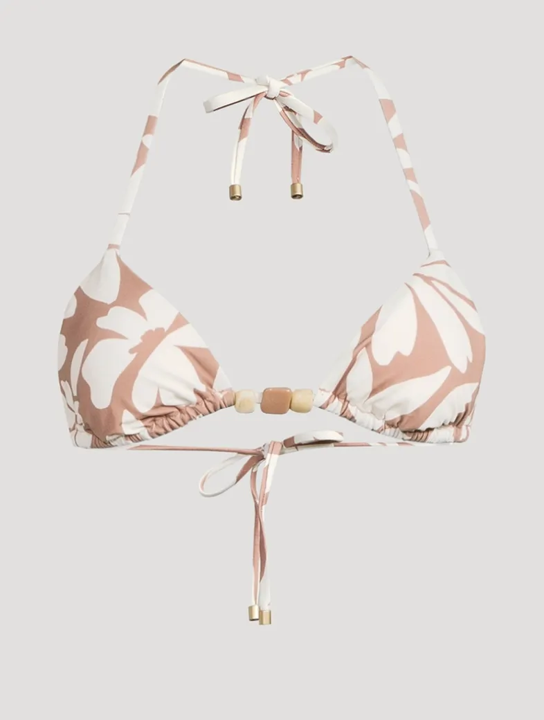 This classic triangle top ties at the neck and back for an effortlessly adjustable fit and features a recycled resin bead detail.