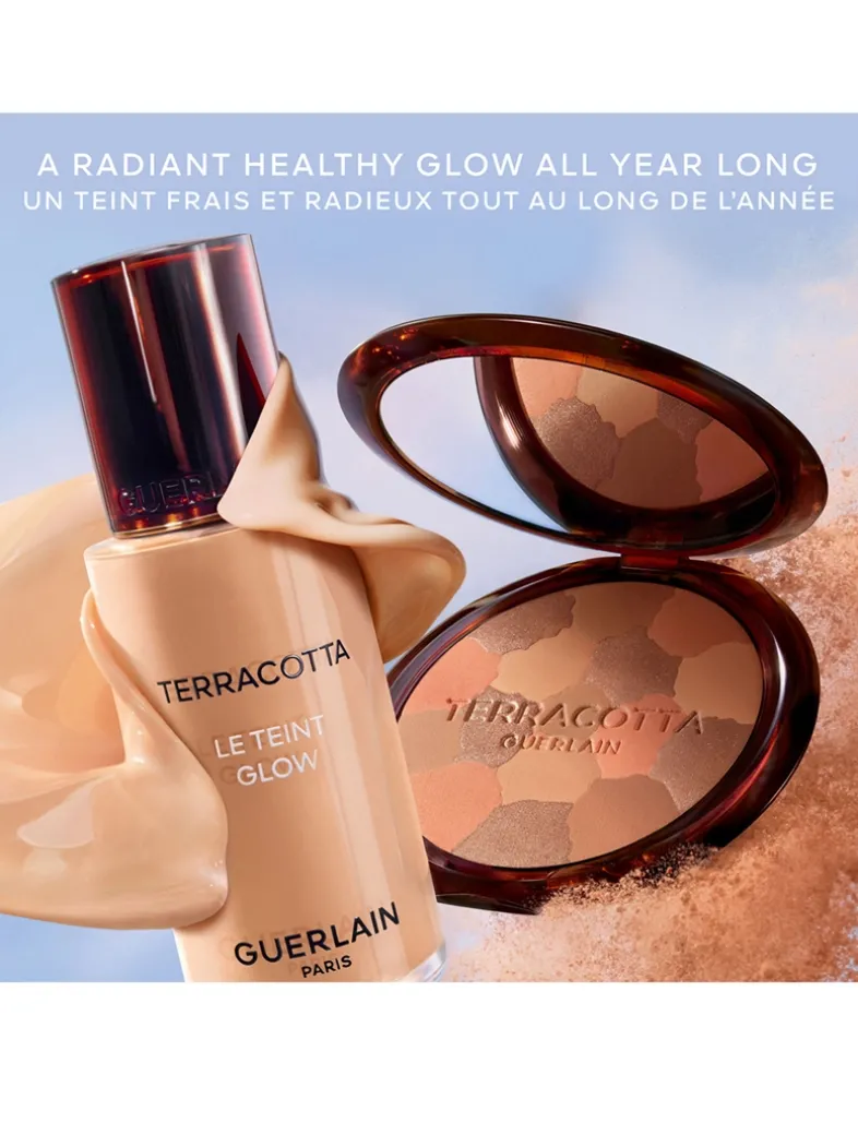 Following Terracotta Le Teint, the luminous matte foundation, Guerlain is enriching its iconic franchise and putting its expertise to the service of a radiant complexion with Terracotta Le Teint Glow: a liquid foundation, formulated with 95% naturally derived ingredients, offering long-wearing and no-transfer hold. Skin is plumped and glowing with health thanks to this makeup essential that creates a fresh and luminous complexion.