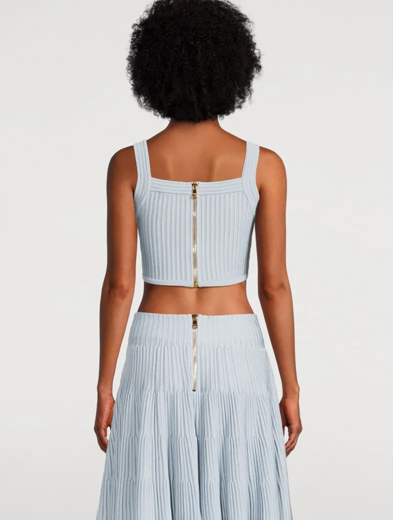 Cut to a cropped length, this fitted tank top has a textured knit design and an exposed gold-tone zip at the rear with a Balmain Paris-engraved slider.