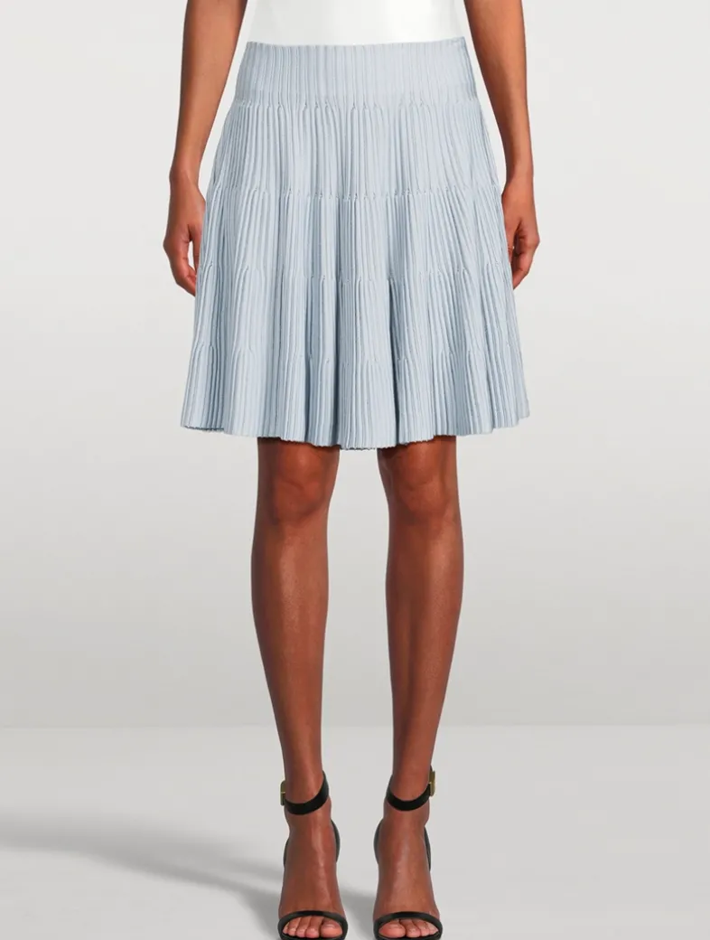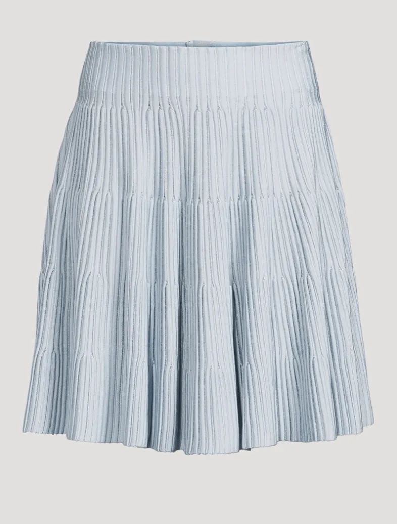 Topped with a reinforced waistband, this flared skirt has a textured knit design and an exposed gold-tone zip at the rear with a Balmain Paris-engraved slider.
