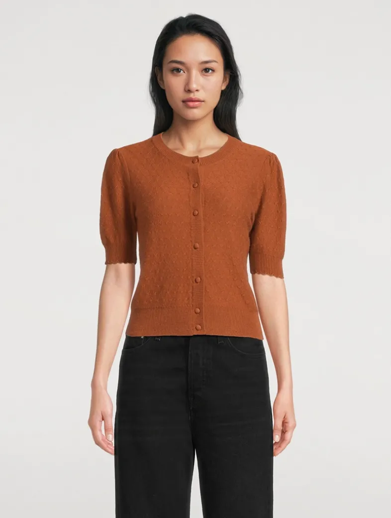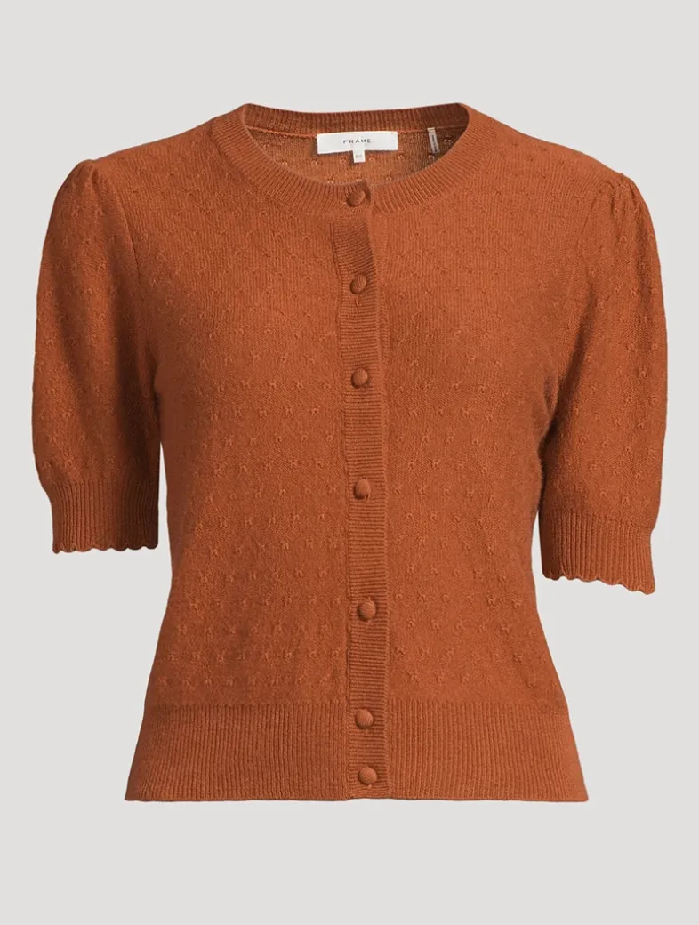 Instantly pull your look together with this pointelle-knit sweater made from super soft cashmere. Puff half sleeves lend charm while scalloped edges add character.