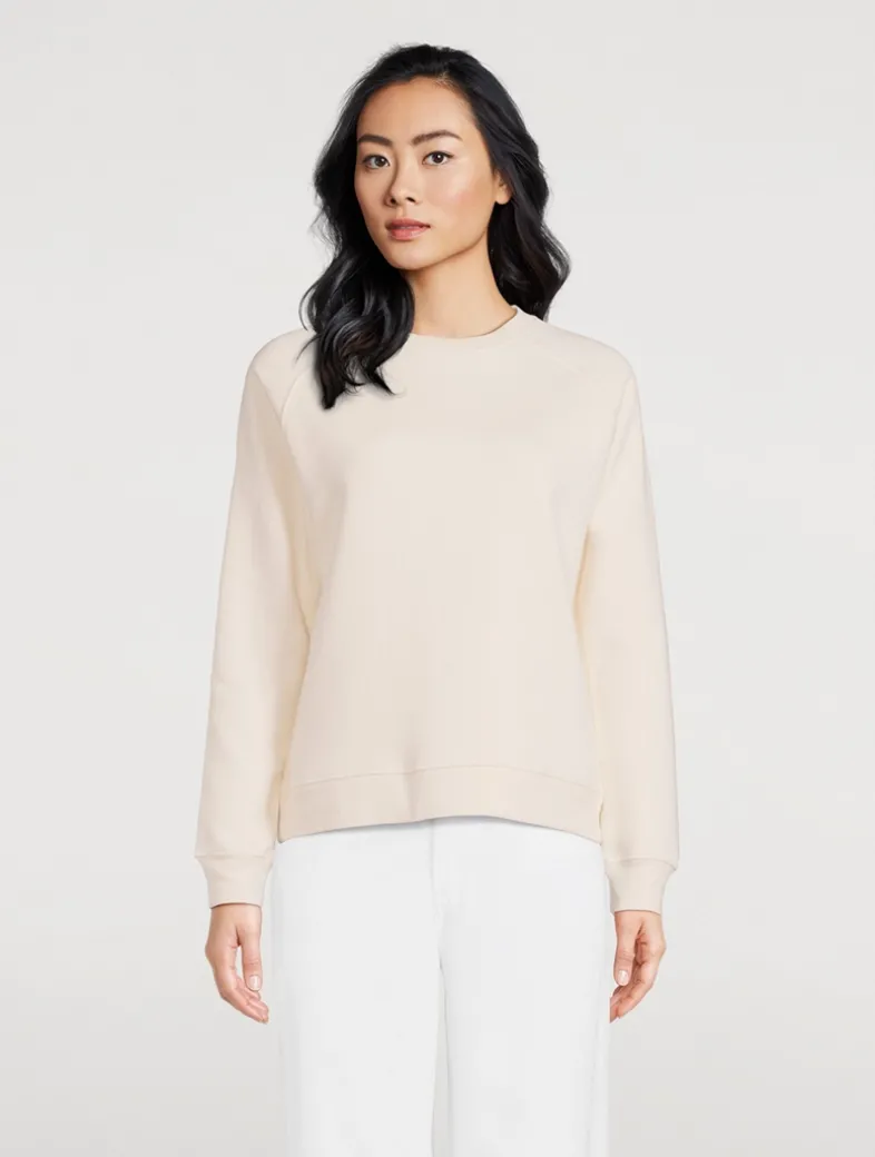Part of the three-piece Everyday Sweatsuit set, this crewneck sweatshirt is made from a soft and lightweight fabric blended with GOTS certified cotton. This piece is crafted using advanced dyeing and finishing methods that reduce water usage by over 50%. The supplier has a zero-discharge policy for dyeing wastewater—ensuring the water is recycled and reused throughout the process.