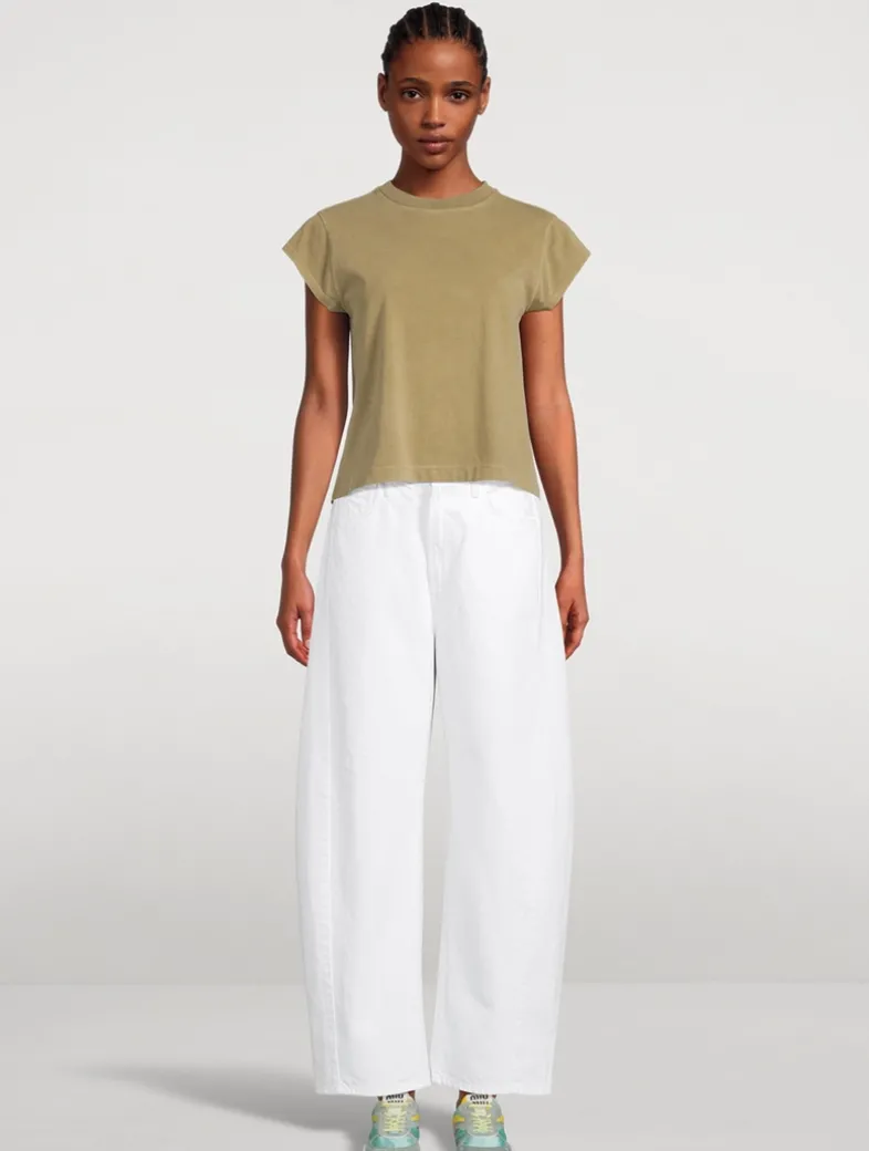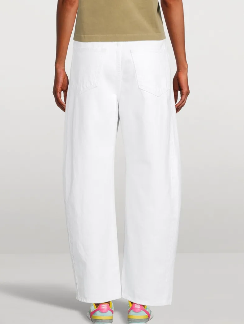 These jeans are designed to sit lower on the hips with a wide, barrel leg and an ankle-length inseam with a clean hem. Made from rigid SUPERIOR denim.