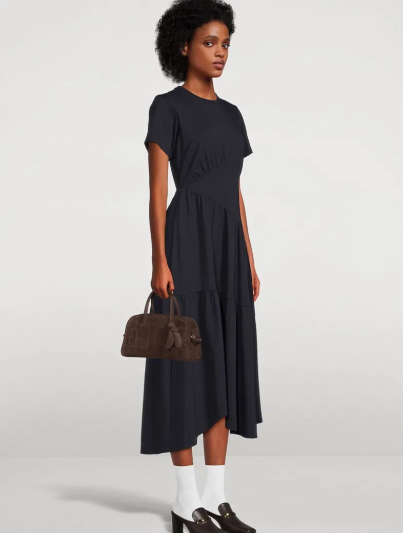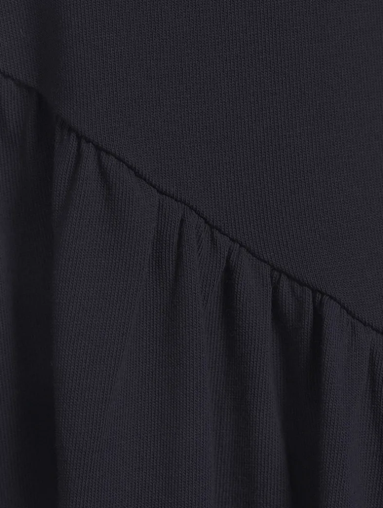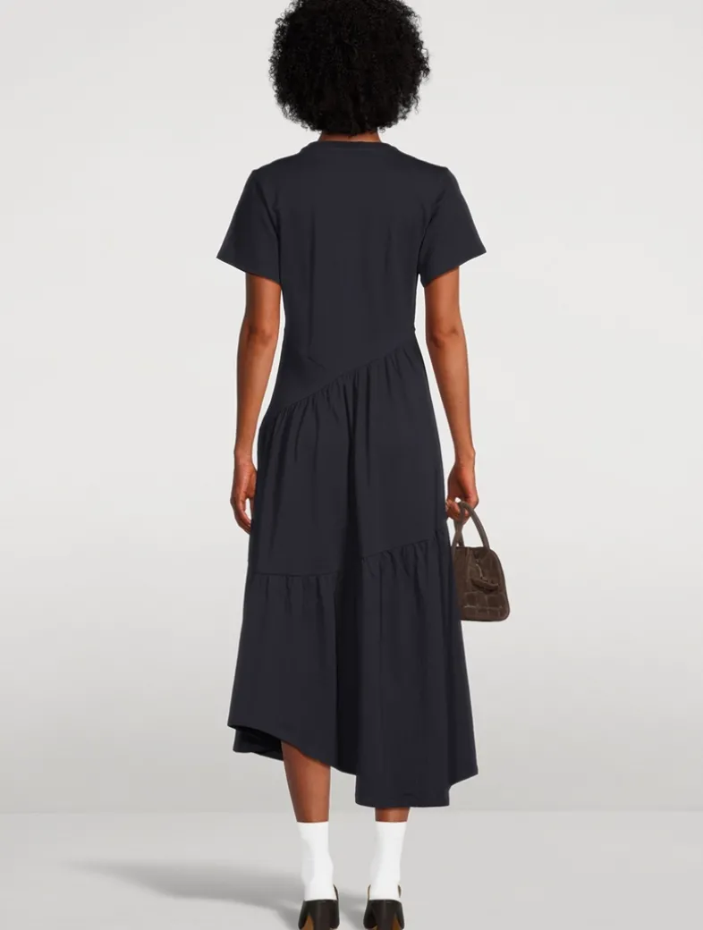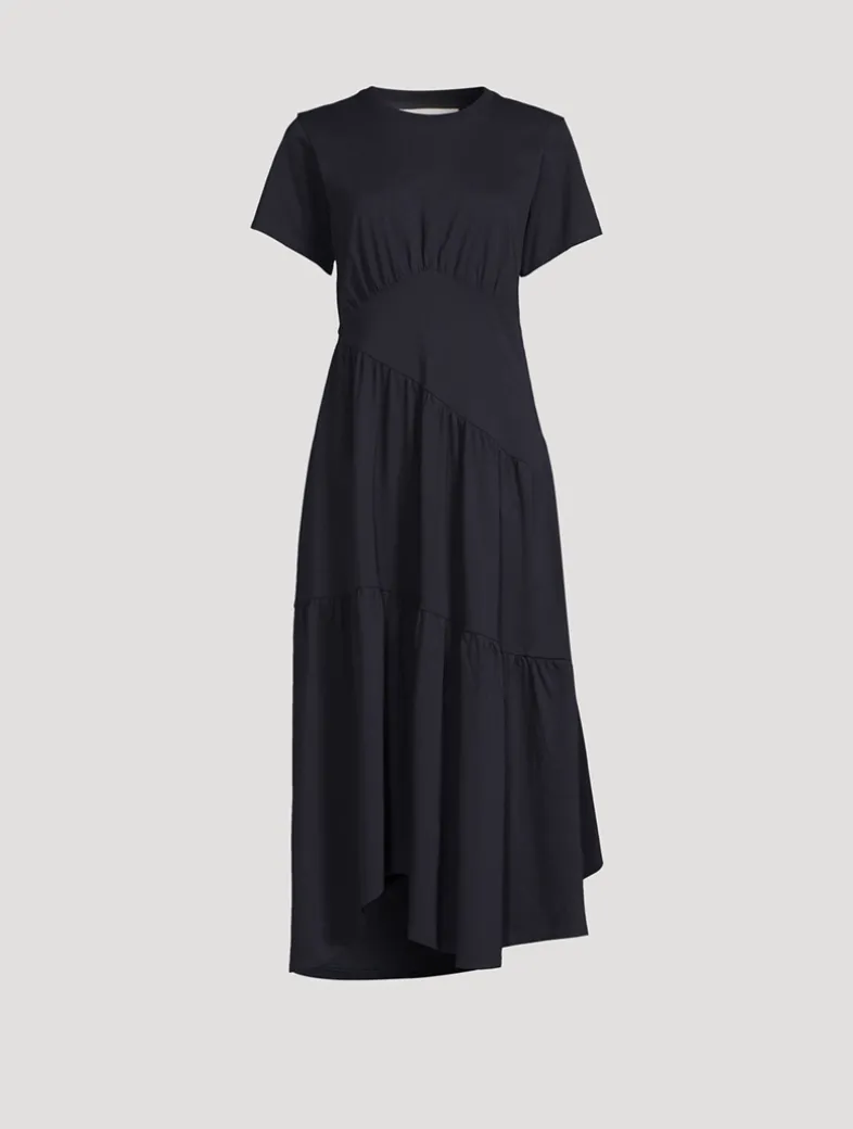 Crafted from a soft, 100% organic cotton knit, this best-selling dress features short sleeves and an empire waist that descends into an asymmetrical skirt with shirred panels. This piece is designed for a flattering fit that feels romantic and fun to wear.