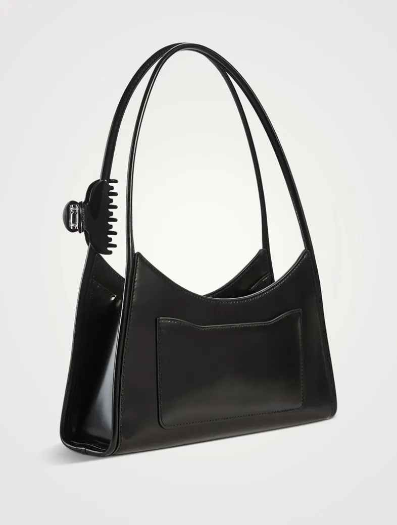 This shoulder bag blends playful elegance with practicality. With a handle-hugging claw clip for on-the-go hair styling, the magnetic closure, external slip pocket, and card slots keep essentials organized. Made from durable leather, it’s built for daily wear. Carry by leather top handles or wear over the shoulder.