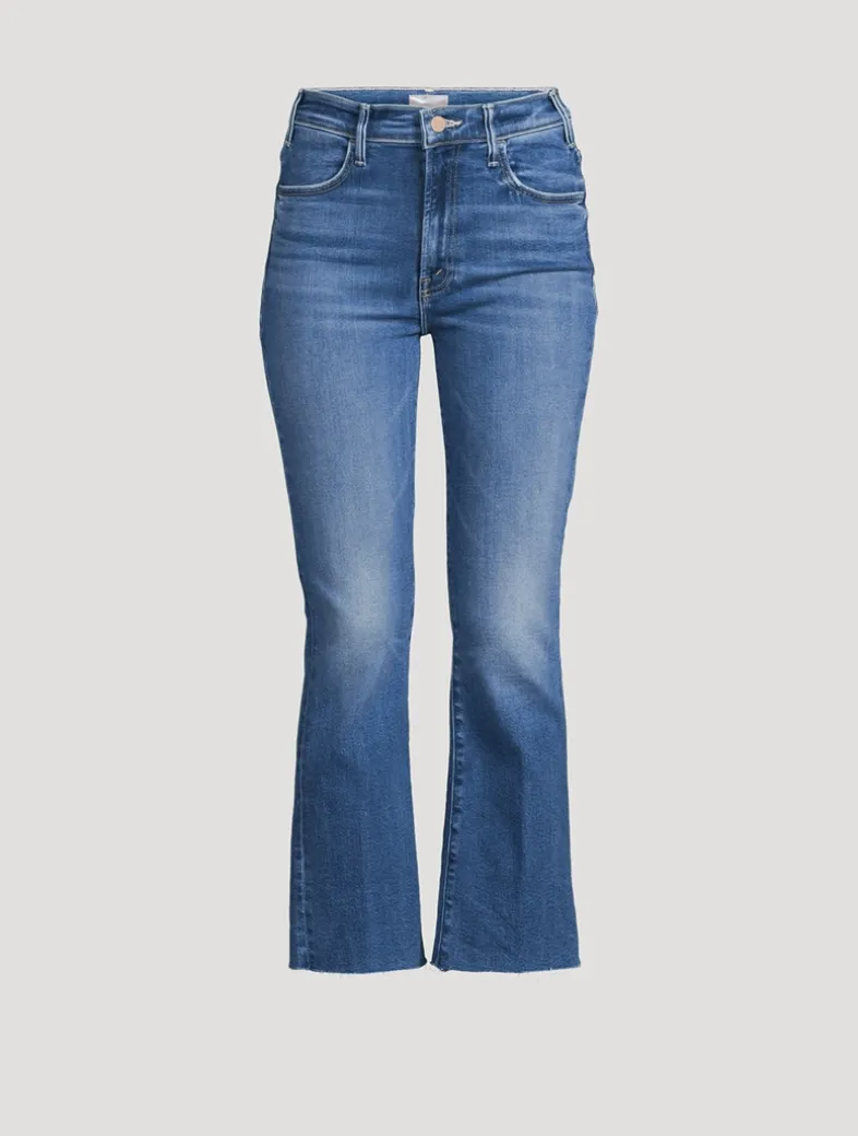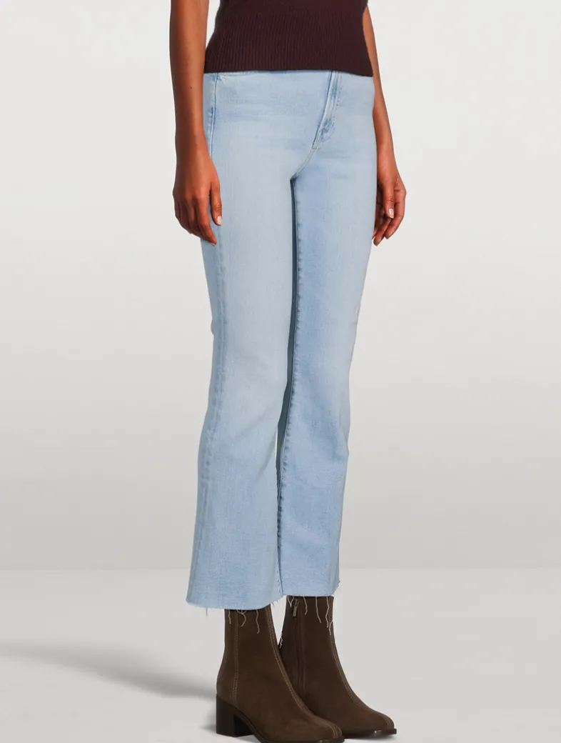 This high-rise bootcut has an ankle-length inseam and a raw hem. Made from stretch denim, Ball’s In Your Court is a bleached light-blue wash.