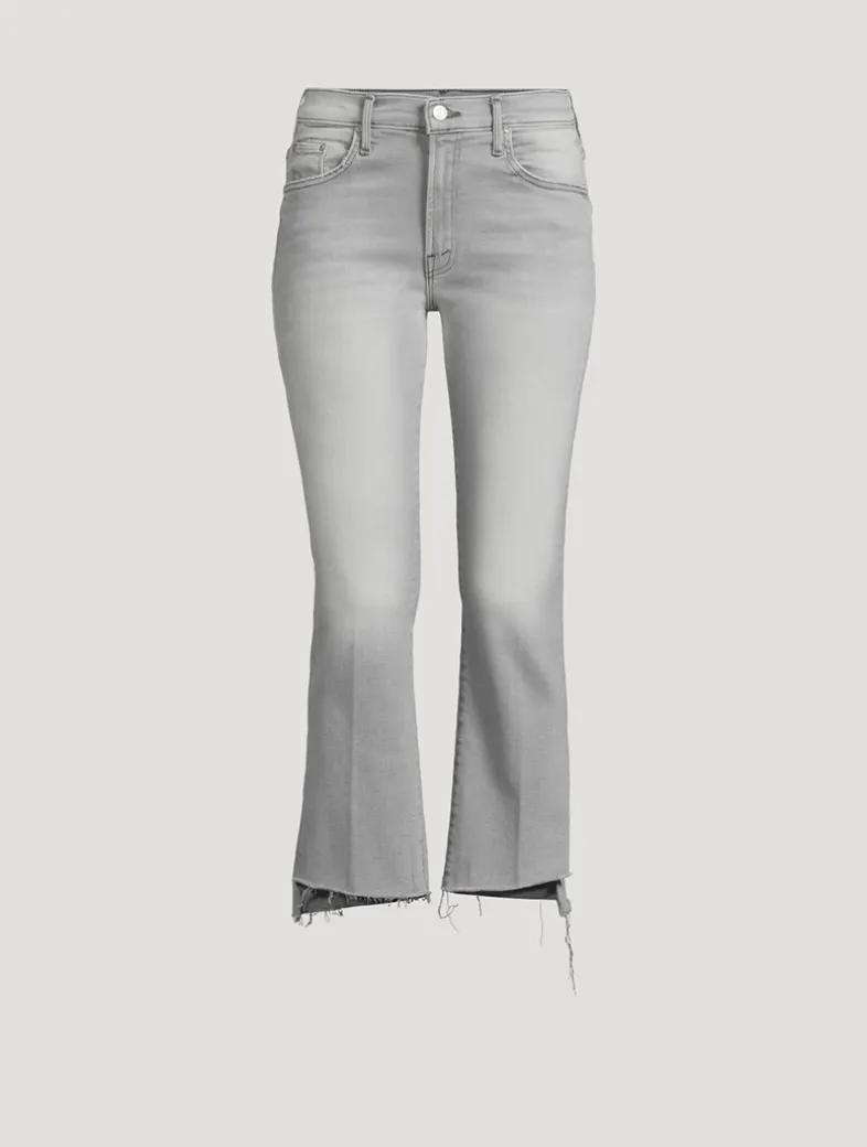 This iconic high-waisted bootcut hits at the ankle with a frayed step hem. Cut from soft stretch denim with subtle fading and whiskering.