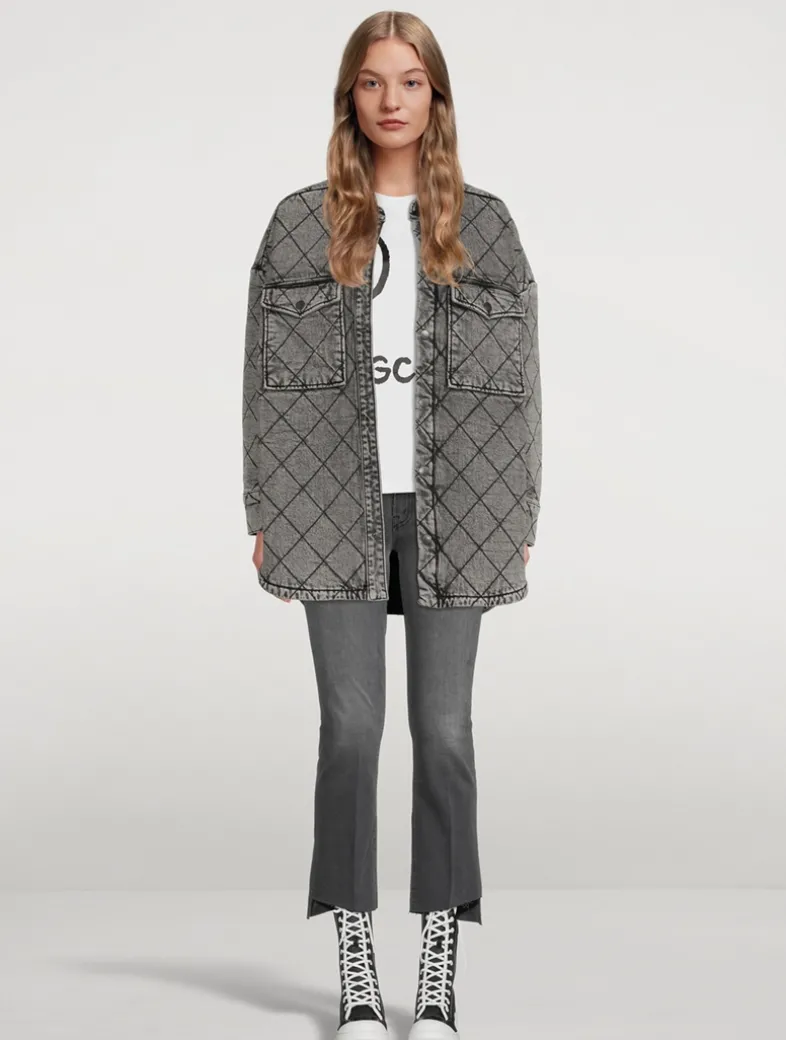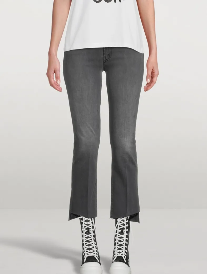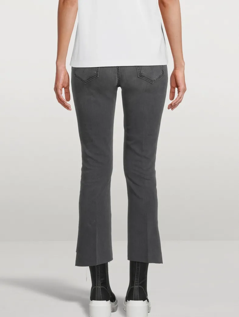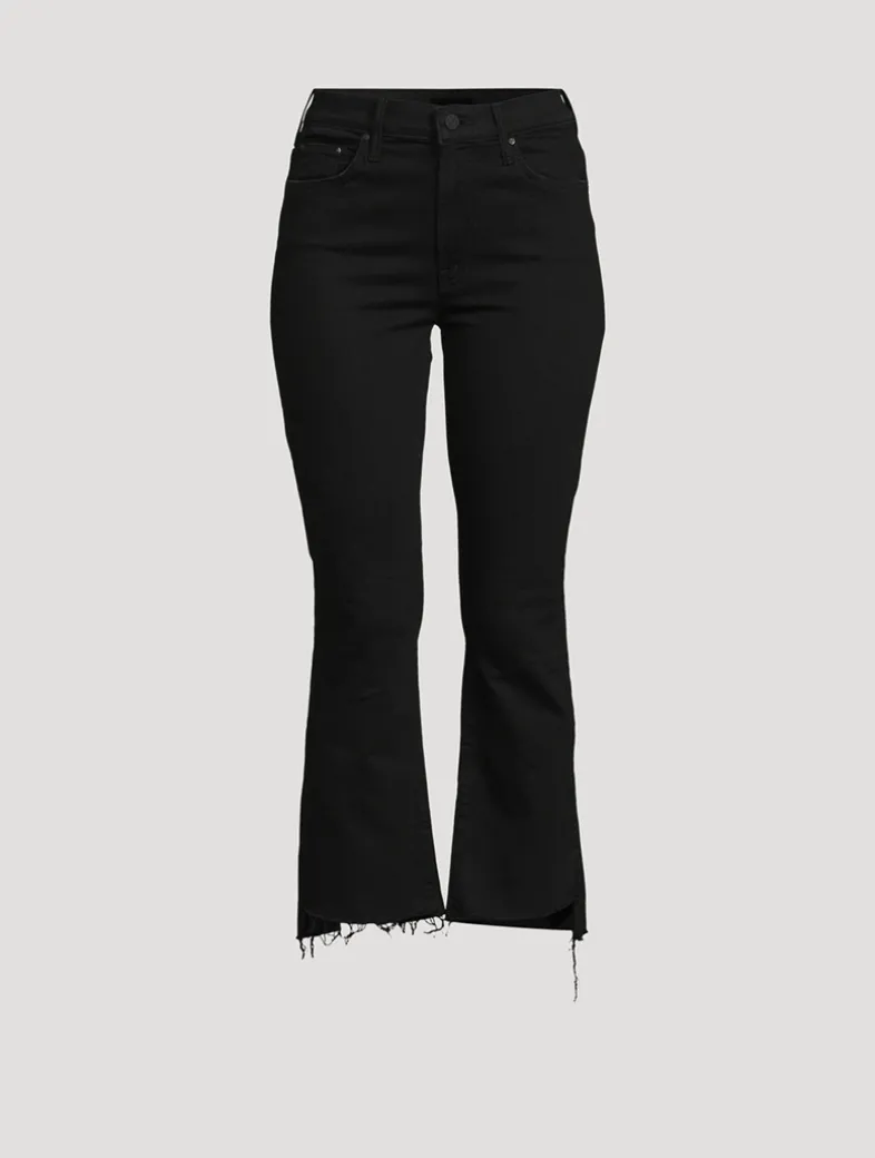 This iconic high-waisted bootcut pair hits at the ankle with a frayed step-hem for a lived-in look. Made in Los Angeles from stretch denim that ensures the perfect curve-hugging fit. Finished with five-pocket styling.