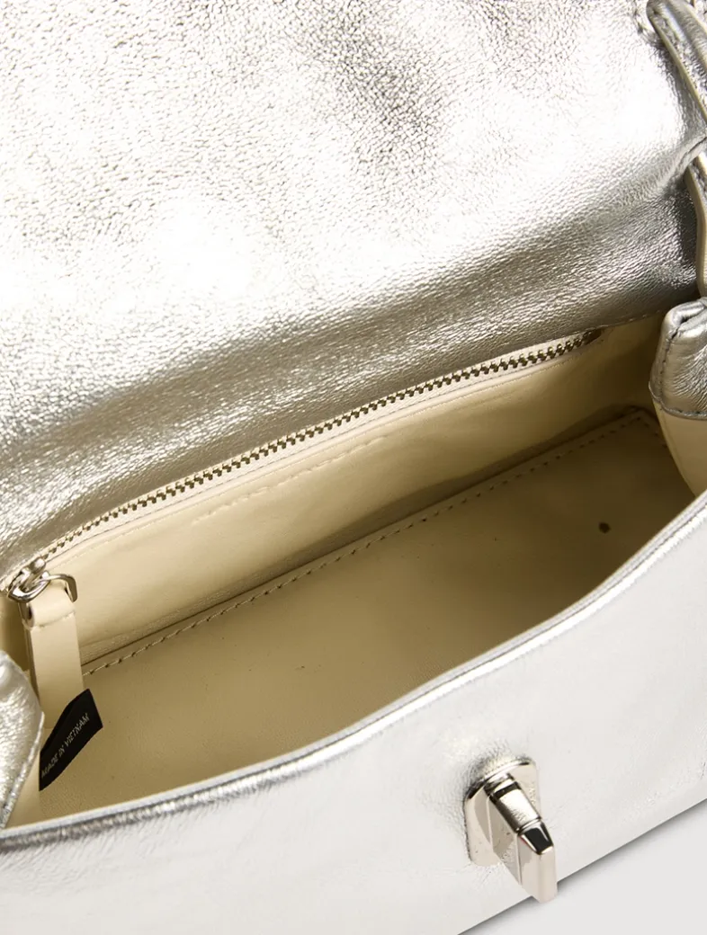 The Mini Dual Bag radiates refined luxury and timeless sophistication. Crafted in covetable metallic leather, this glamorous silhouette features signature J Marc turn-lock closure and handle-adorning interlocking J Marc hardware, subtly marked with engraved branding.