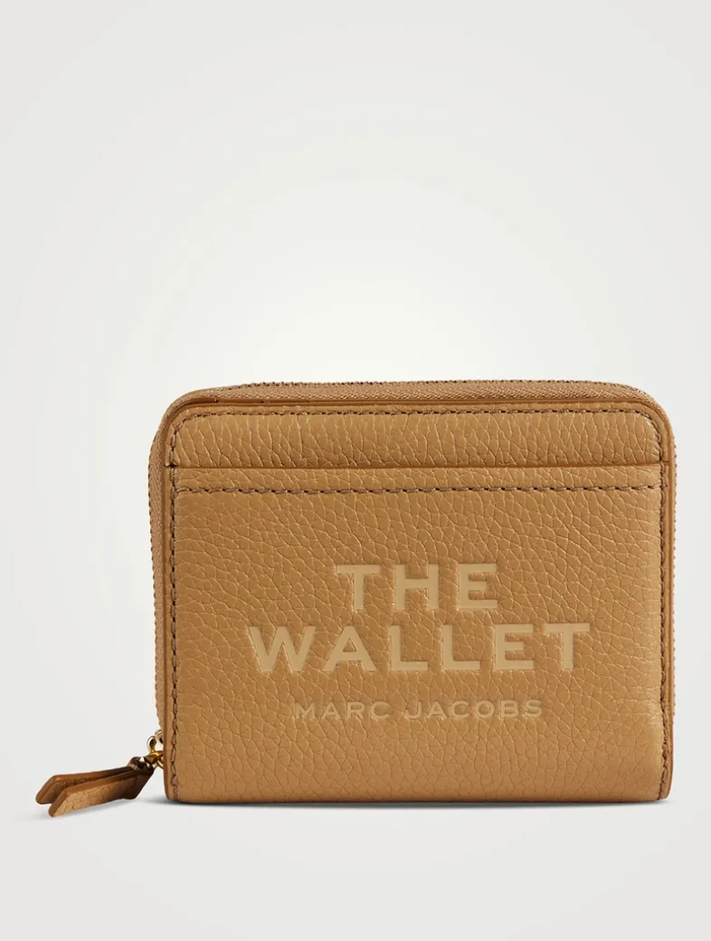 This mini compact wallet is designed with the same bold branding as Marc Jacobs’ best-selling tote. Securing with a snap closure, it includes four card slots, one bill sleeve, two interior slip pockets, one coin pocket, and two exterior slip pockets.