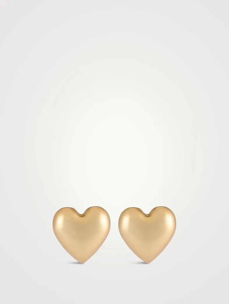 Shaped like hearts, these medium-sized stud earrings have a metallic finish.