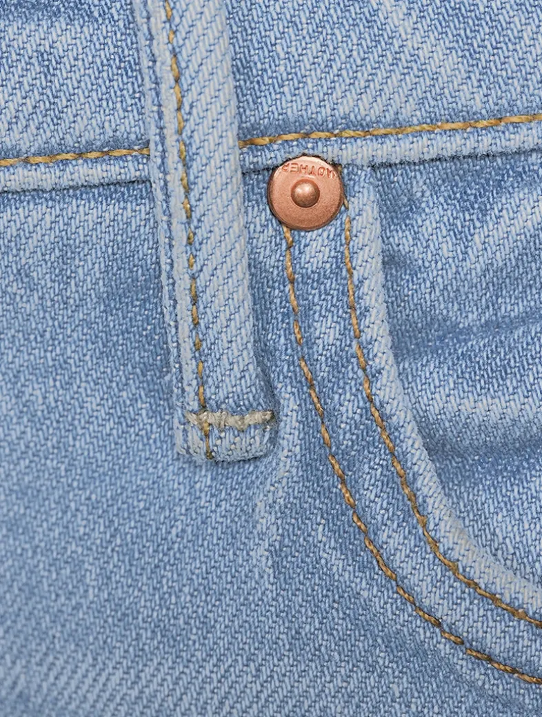 A mid-rise straight leg with a cropped inseam and a clean hem. Made from semi-rigid SUPERIOR denim in a light was with whiskering and fading throughout for a lived-in look.