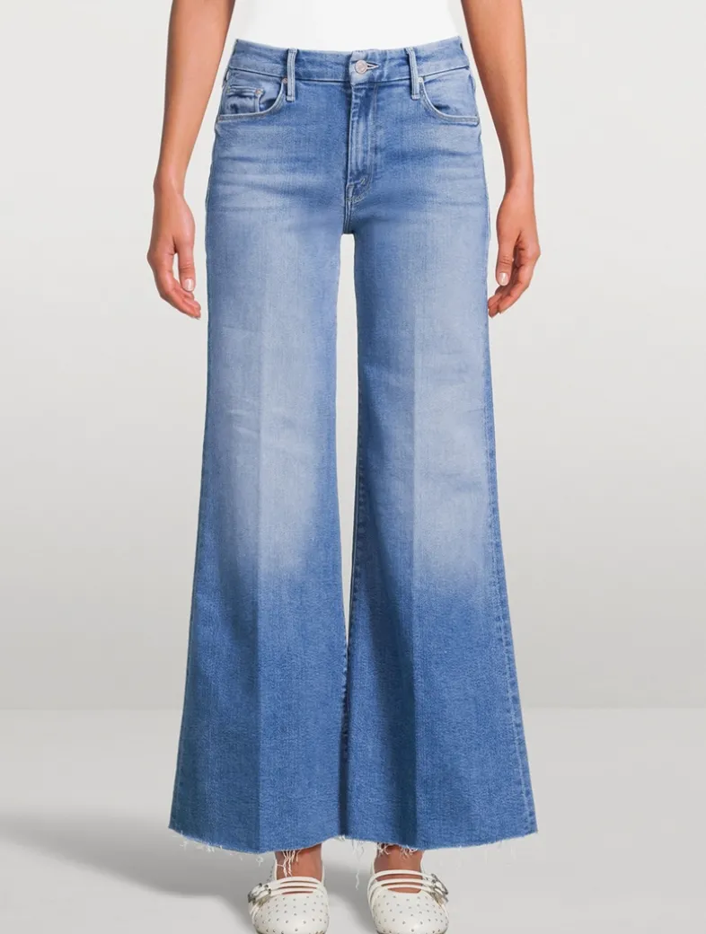 Made from stretch denim, these high-waisted jeans have a wide leg finished with a frayed hem.