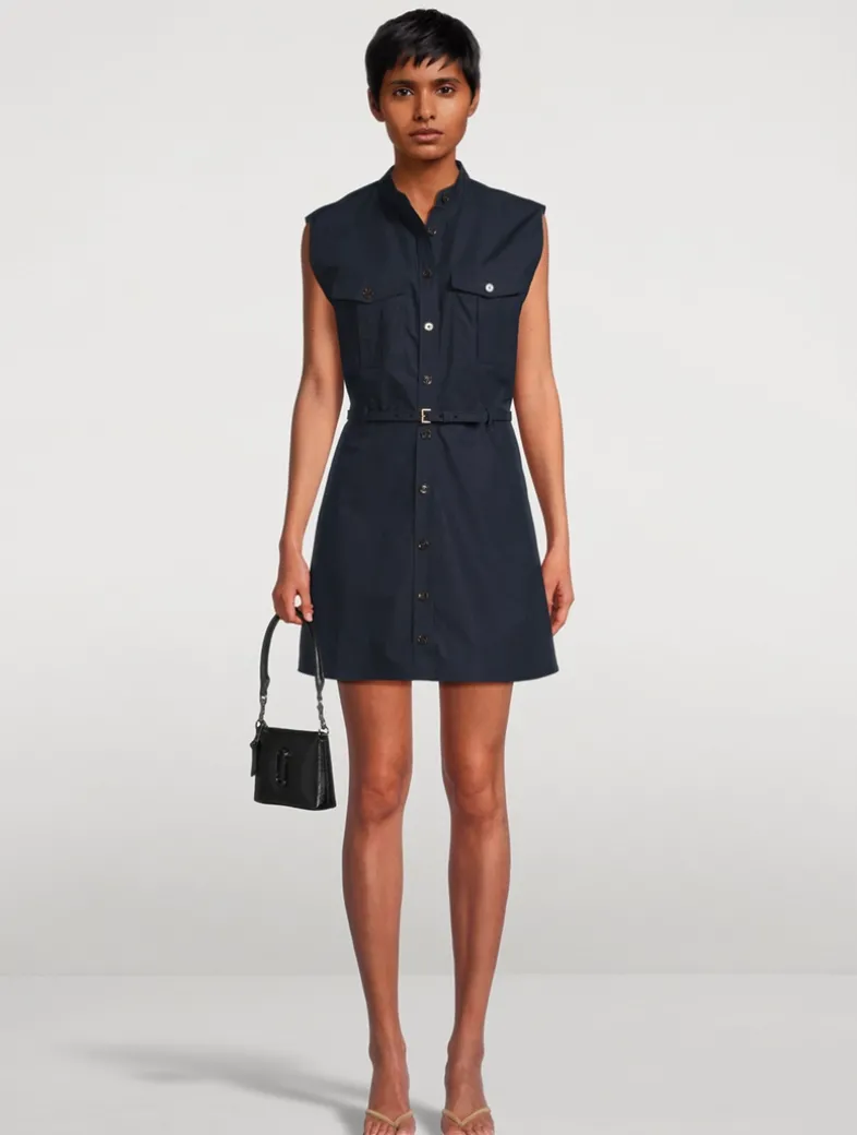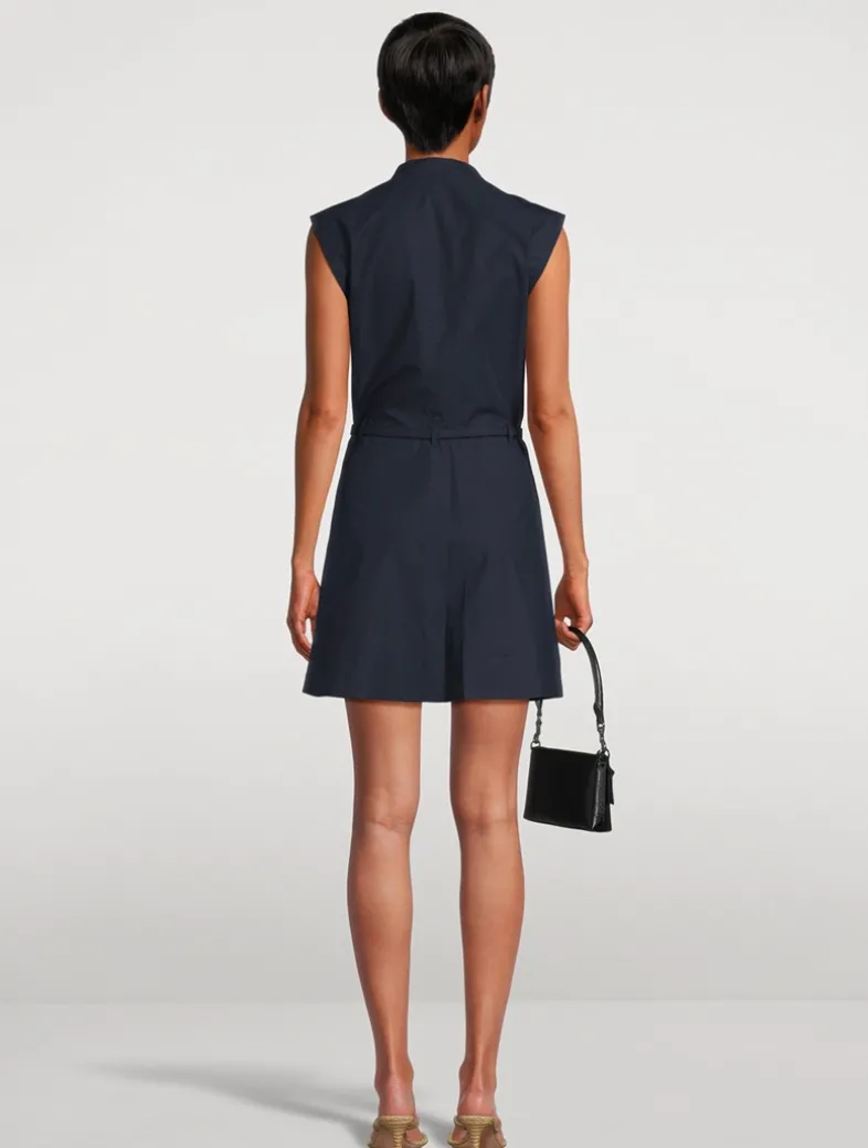 A timeless take on utility dressing. Crafted from crisp cotton, this safari dress blends structure with ease—polished yet effortless. A stand collar, subtle pockets, and a coordinating belt shape a silhouette that moves with you, no matter the destination.