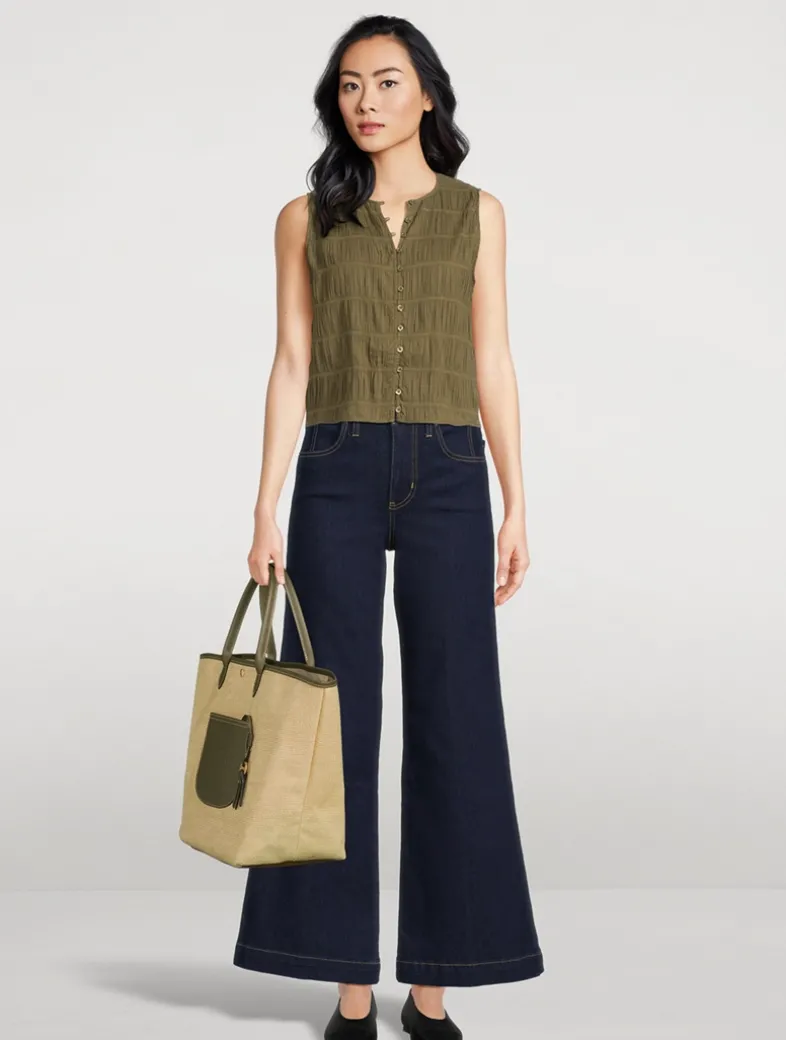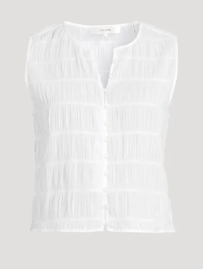 For a look that feels effortlessly, instantly pulled together, reach for this sleeveless top, made from crisp cotton fabric with a hint of stretch. It feels both easy and elevated thanks to a round collar, smocking, and a relaxed fit.