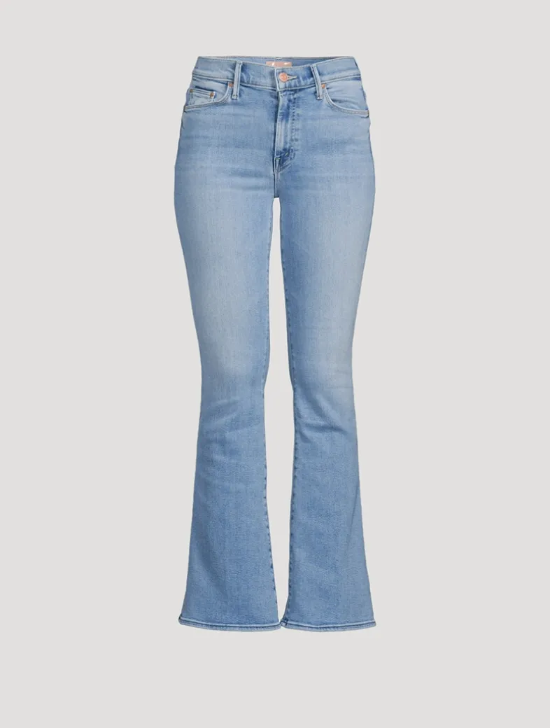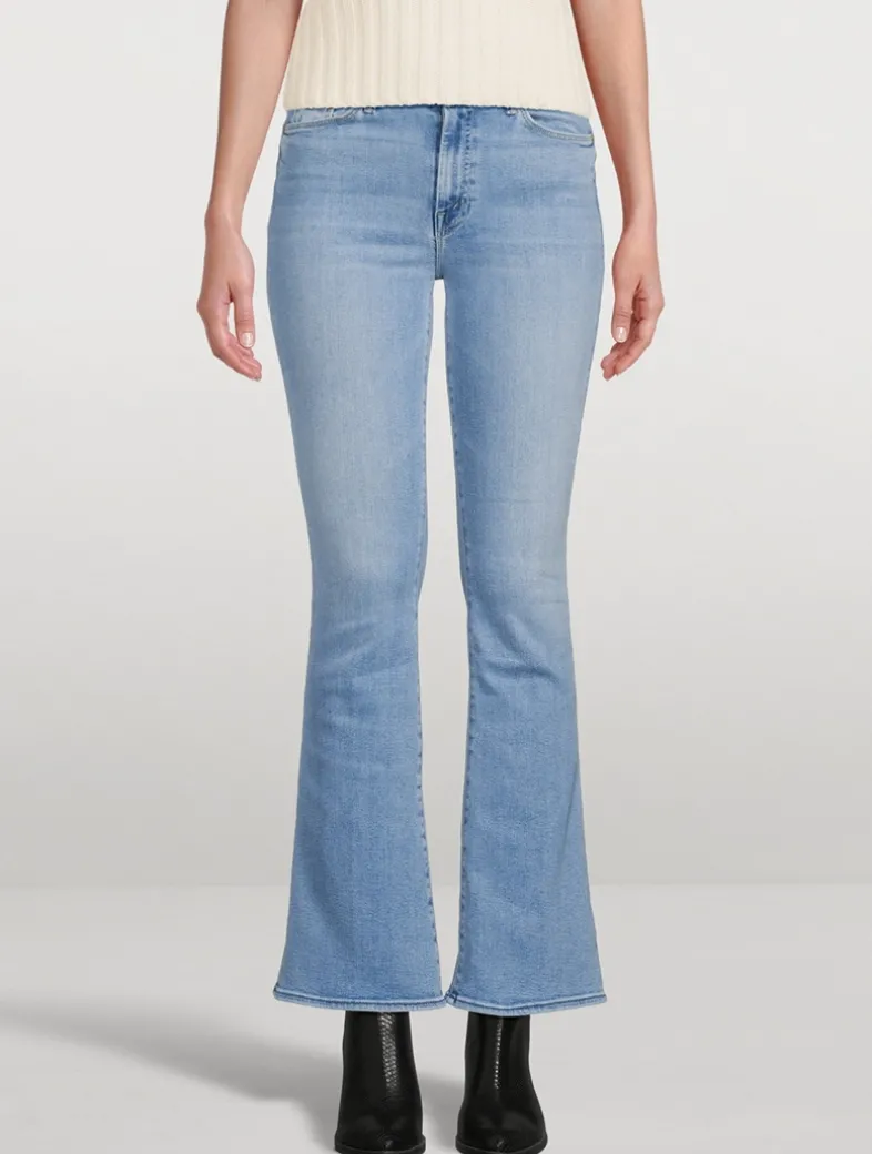 This cult-favourite flare jean has a mid rise with a 32.5-inch inseam and a clean hem. Made from stretch denim, Blessing In Disguise is a light-blue wash with subtle fading and whiskering.
