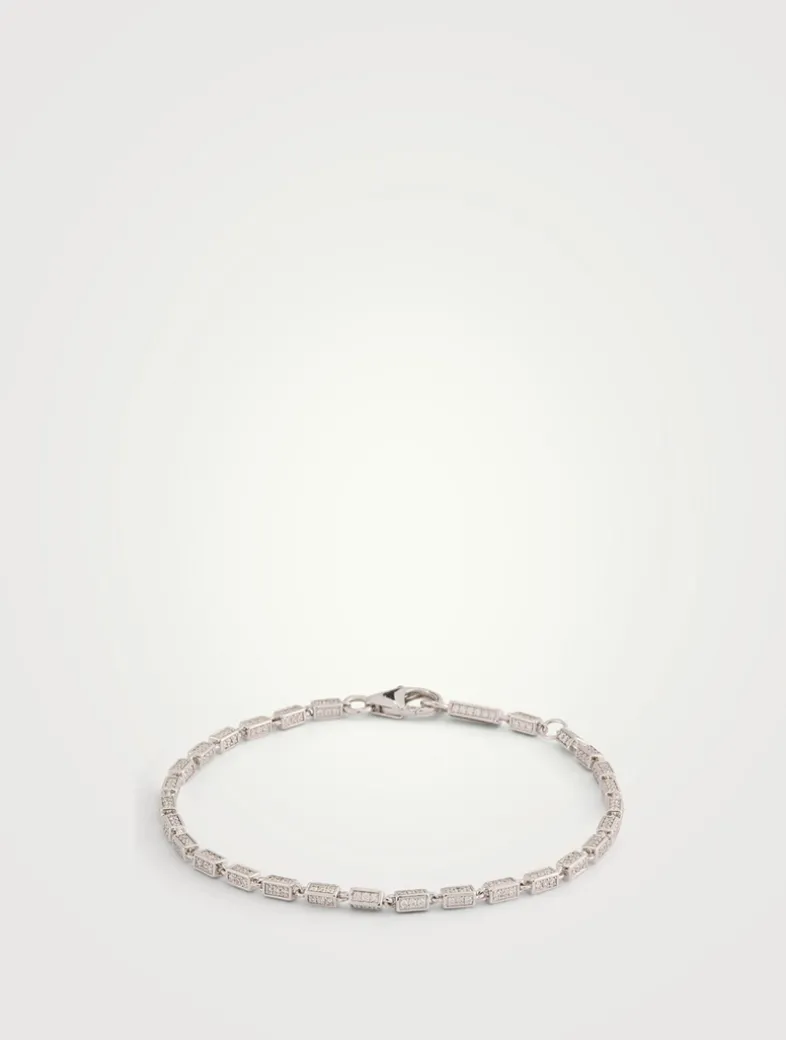 Crafted from 18k gold, this block-chain bracelet traces a line of four-sided links set with pavé white diamonds.