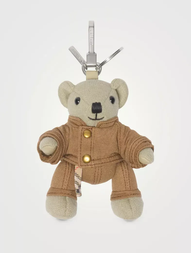Our signature teddy charm in wool cashmere, wearing a jacket and matching trousers inspired by a look from the Burberry Summer 2025 runway. The design features moveable arms and legs. This is not a toy and is intended for collectors of 14 years of age and above.
