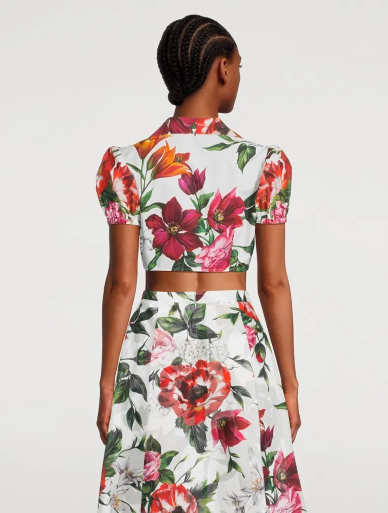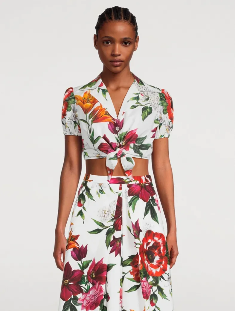 Showcasing DOLCE & GABBANA’s love for romantic motifs, this puff-sleeve shirt is printed with large-scale florals. It is crafted of a crisp cotton poplin and has a cropped length with knot-front detail.