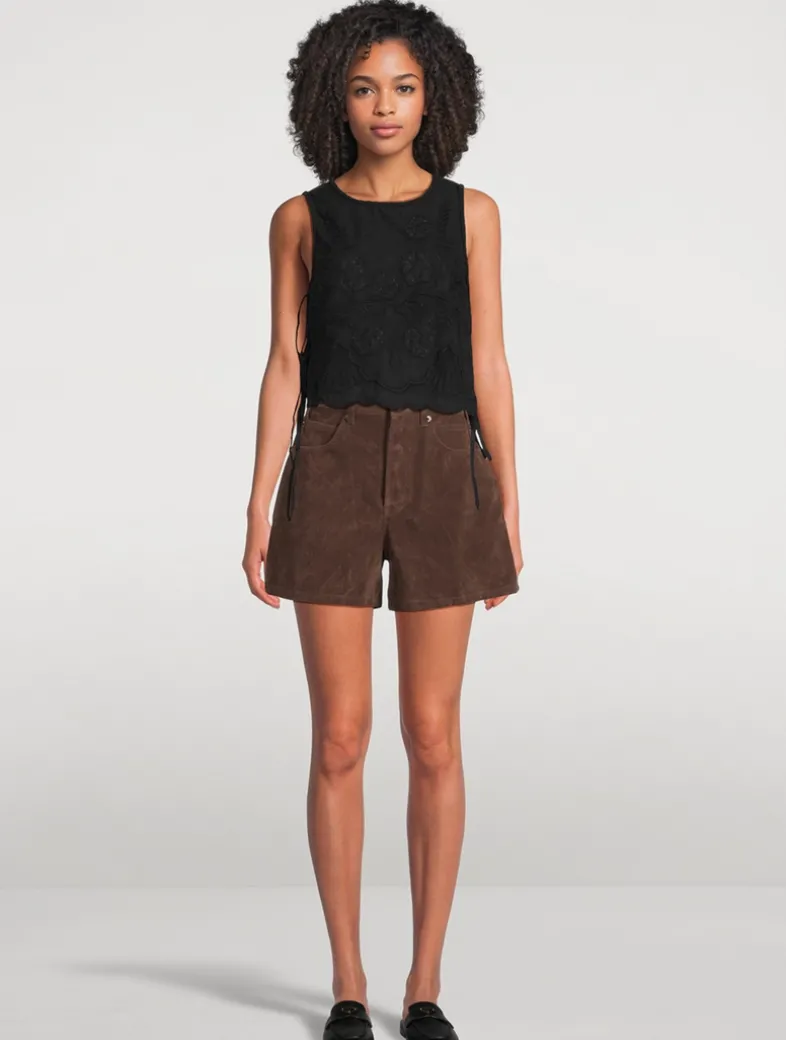 Designed with western-inspired edge, these bold shorts from the We The Free collection feature a relaxed fit with soft vegan suede finish for added dimension.