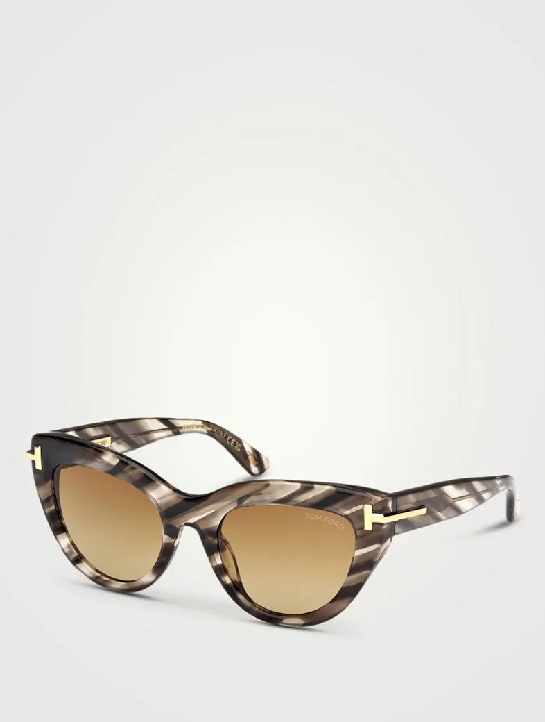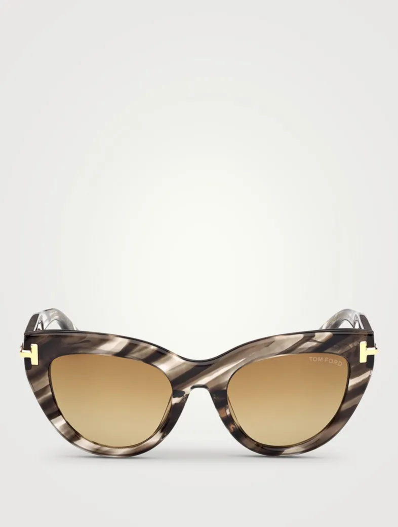 From the Icon collection. Featuring an upswept cat-eye shape, these designer sunglasses have bold metal T temples.