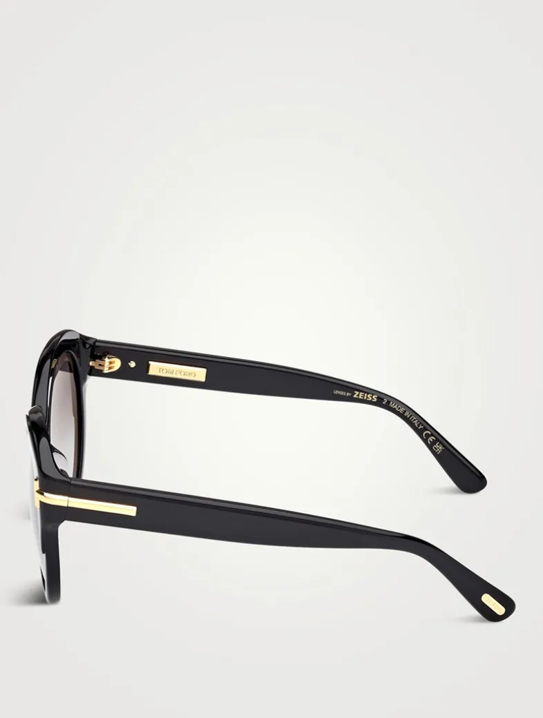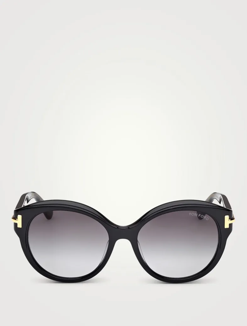 From the Icon collection. Featuring a sleek round shape, these designer sunglasses have bold metal T temples.